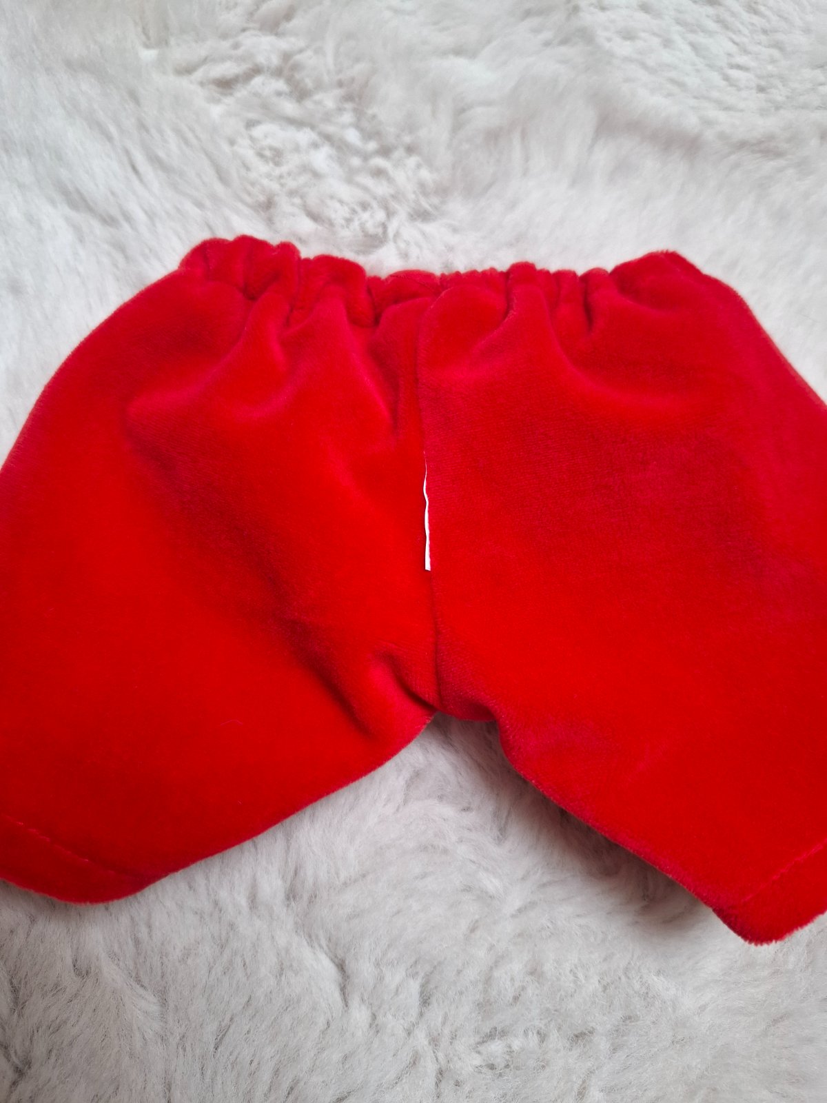 Červený set pre babiku, zo zadu kúsok visačky, bola z vonku. Cena 2 Eur