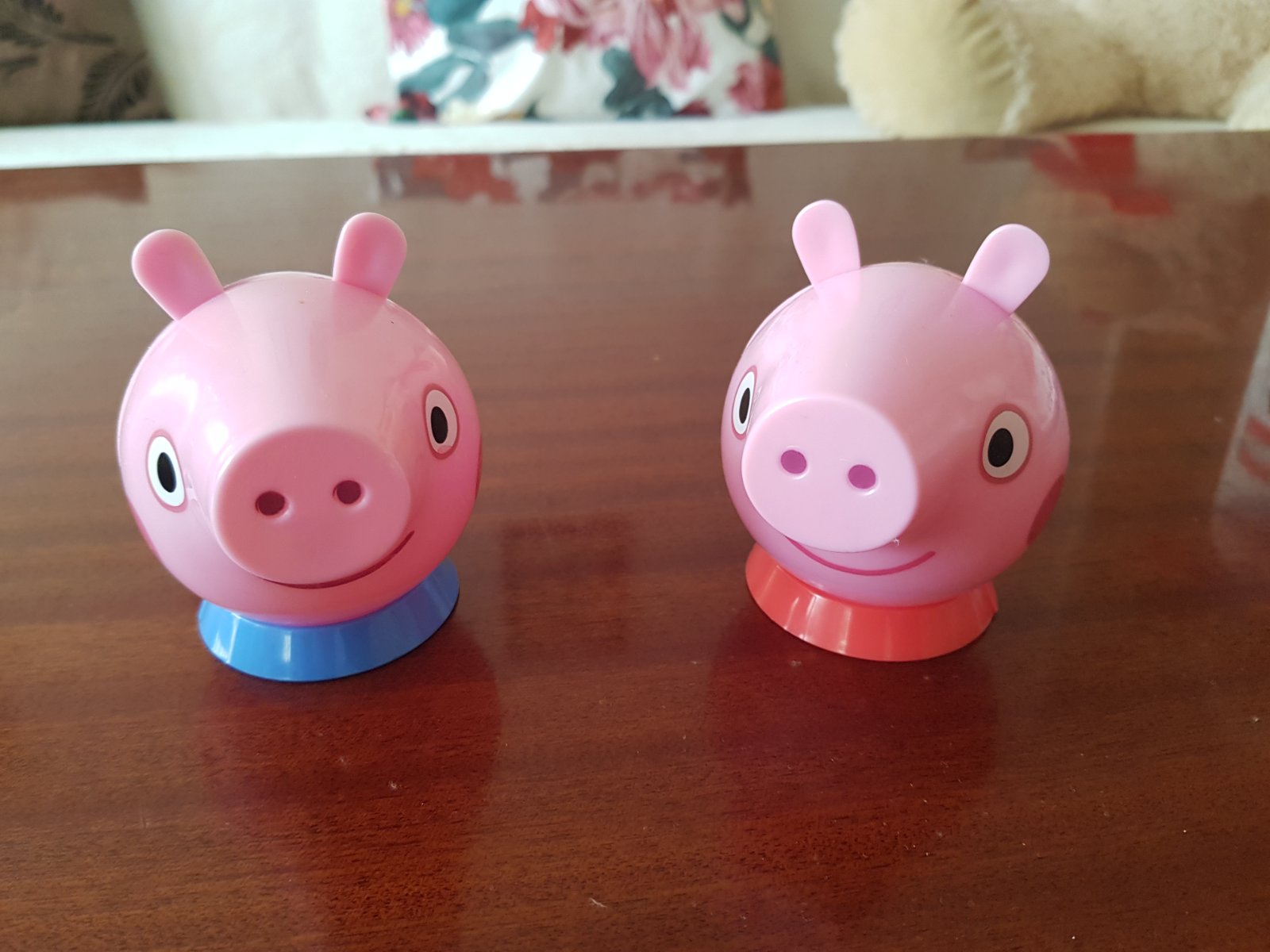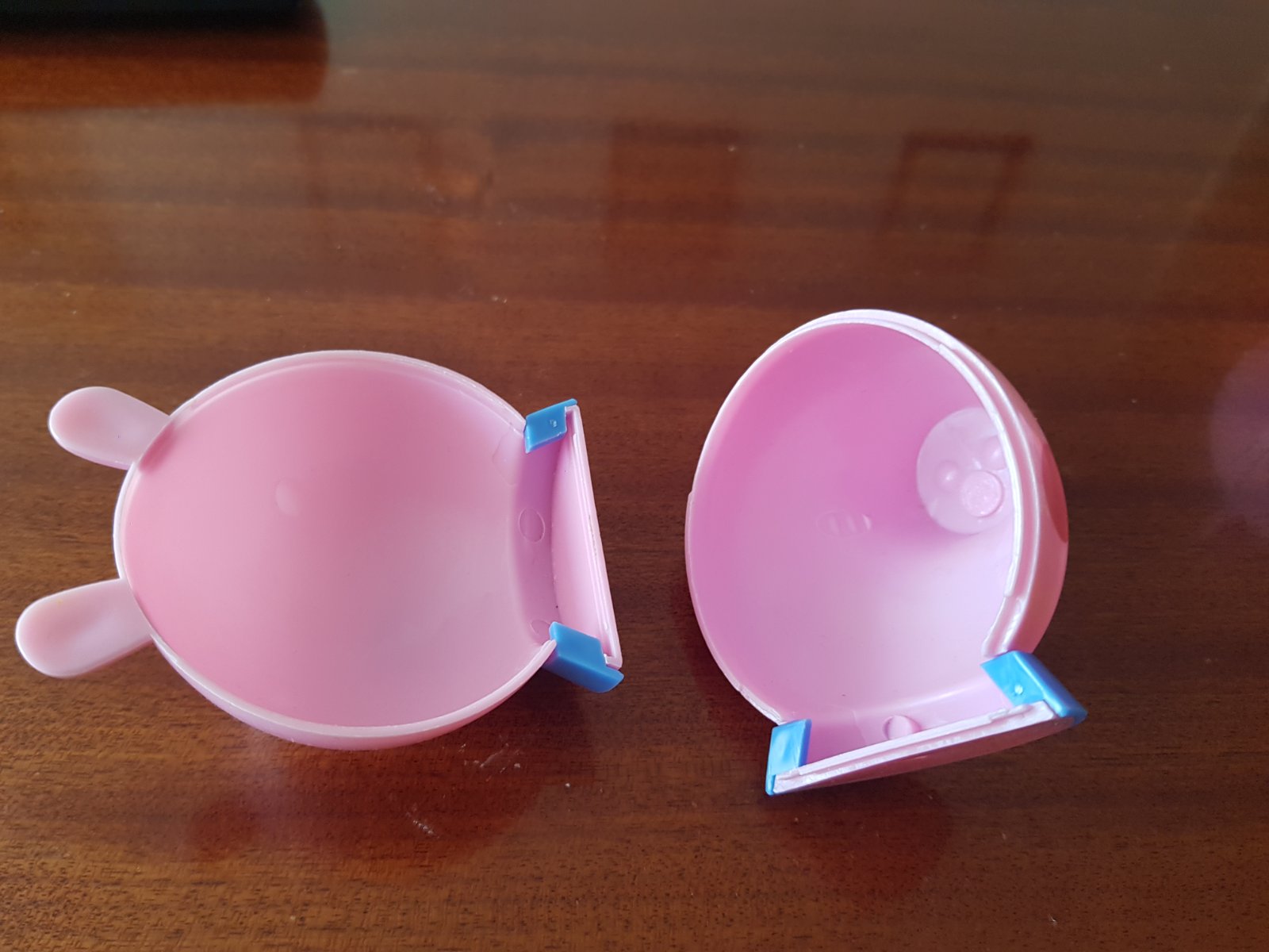 Postavičky bez poškodenia,dajú sa rozobrať,môžu slúžiť aj ako krabička.My sme používali na cukríky.Cena spolu.