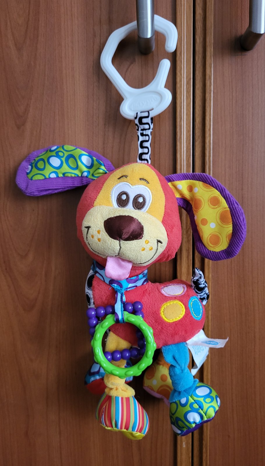 Vďaka plastovému klipu (karabíne) sa dá ľahko pripevniť na kočík, autosedačku, postieľku alebo hrazdičku.