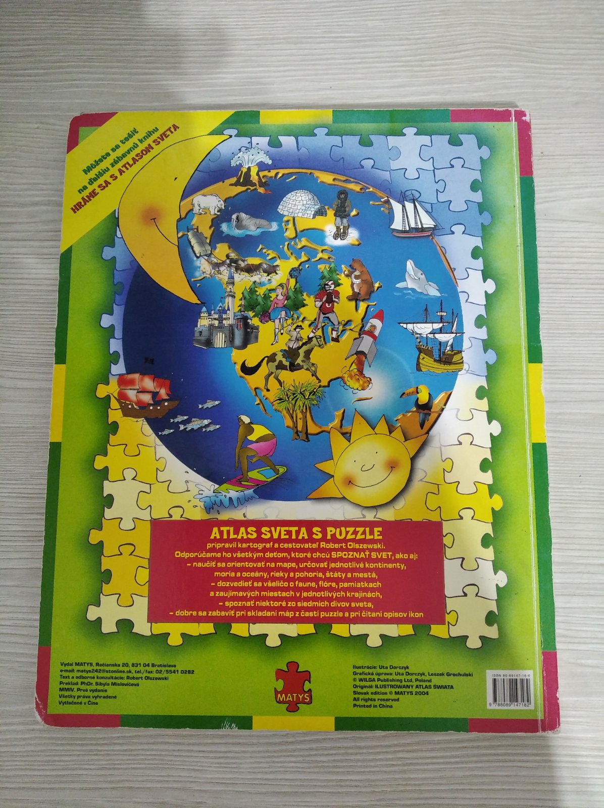 Atlas sveta - PUZZLE - 6 obrázkov - len jeden je kompletný, v ostatných chýbajú dieliky