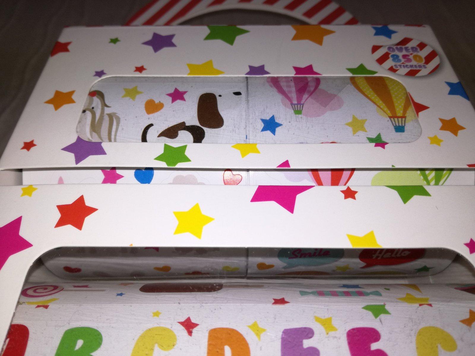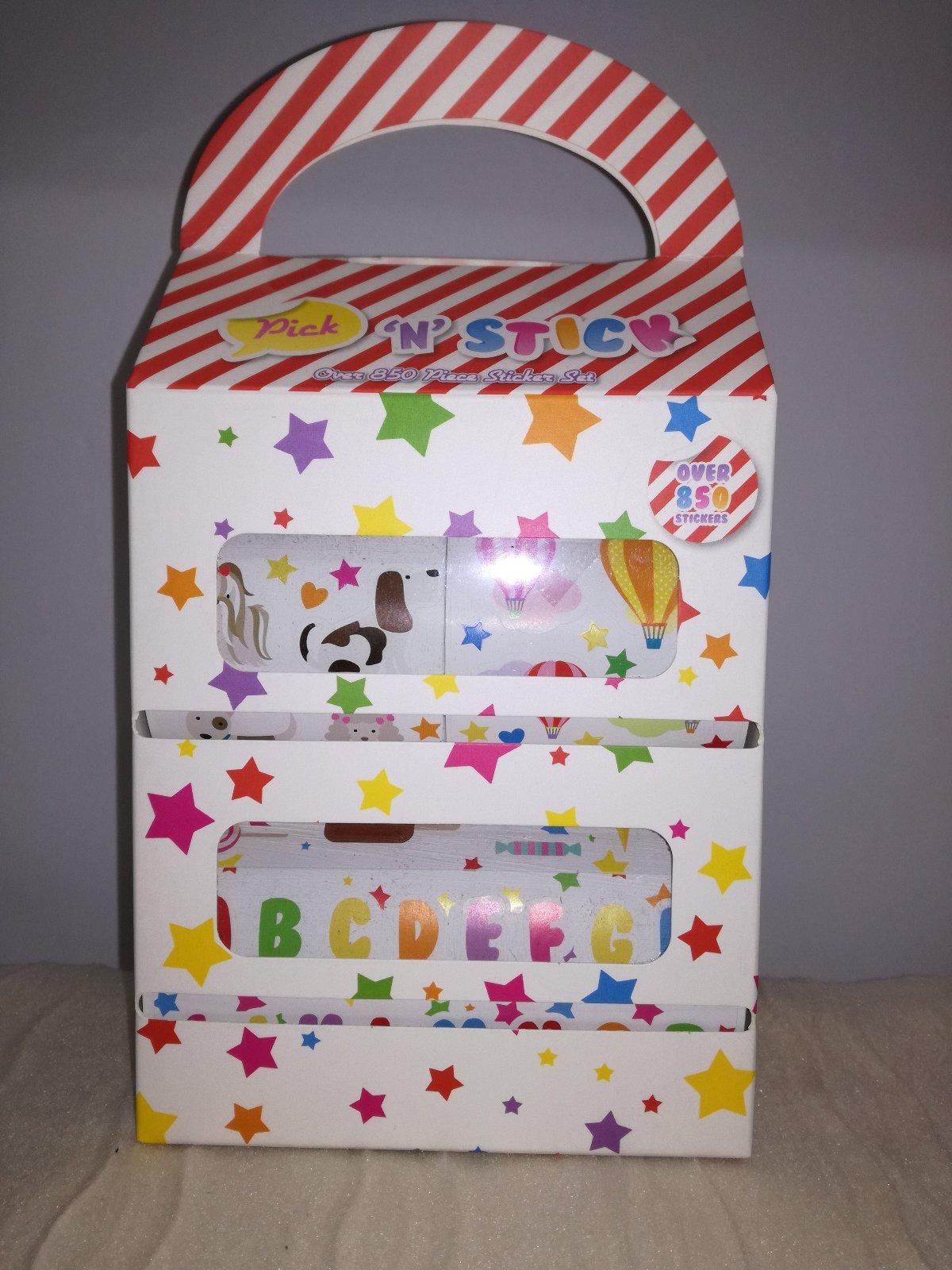 Viac ako 850 nalepiek na troch samostatnych rolkach. Krabicka prisposobena na vysunutie konca rolky, cim nalepky ostavaju pocas pouzivania upratane v krabicke - nie je potrebne ich vyberat.