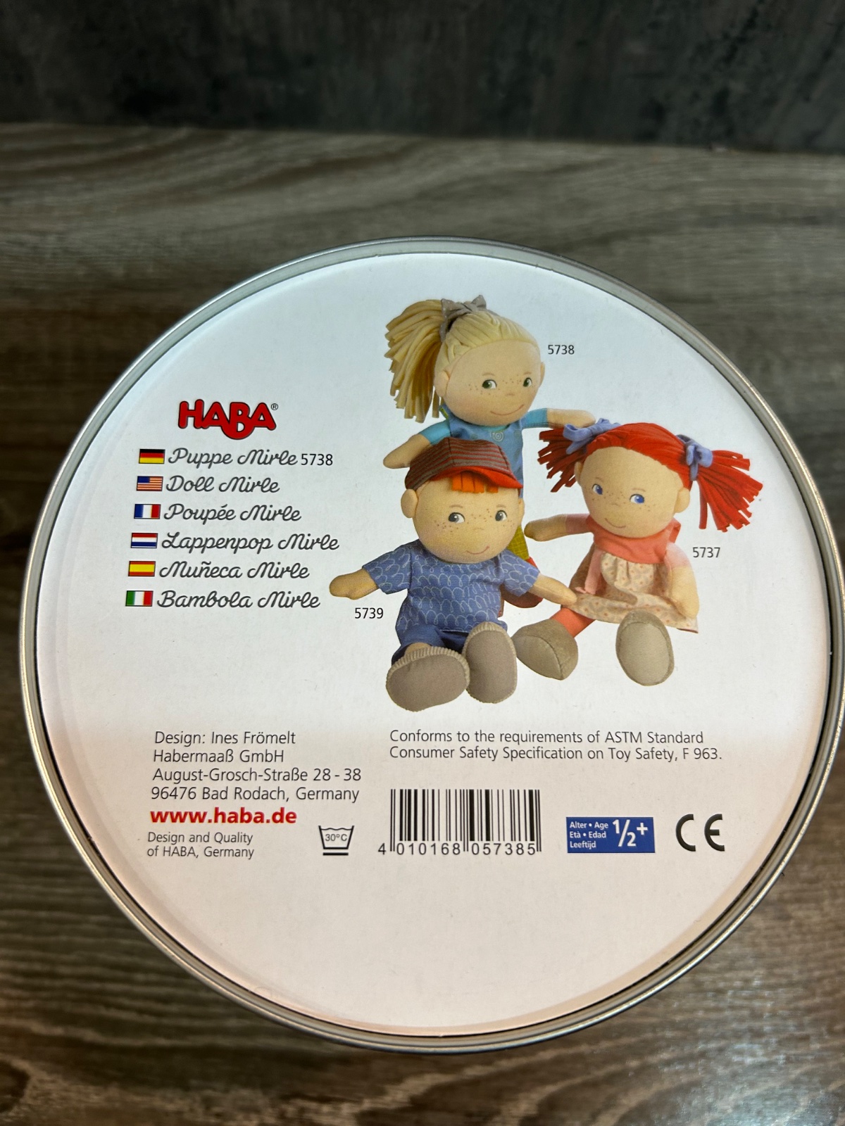 Bábika Mirle je plyšová kamarátka pre všetky bábätká a batoľatá. Mirle je mäkká a prítulná, presne taká, akú ju batoľatá milujú. Sprevádza deti vo všetkých situáciách: bábika Mirle utešuje, keď ju niečo bolí, alebo sa lúči so svojou kamarátkou bábikou vďaka láskyplne vyšívanej tvári. Mirleine slamené blond vlasy sú pre batoľatá fascinujúce. Radi ich chytajú a hrajú sa s nimi. Vo vysokokvalitnom darčekovom balení je Mirle krásnym darčekom k narodeniu. HABA zaručuje dlhotrvajúcu zábavu pri hre.