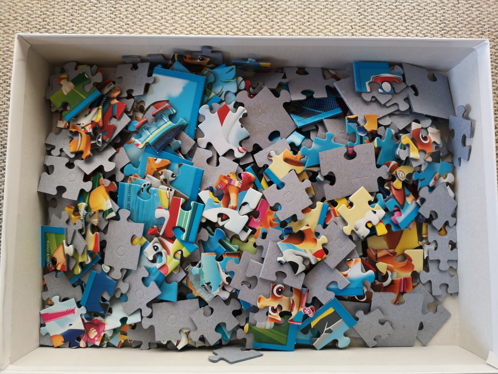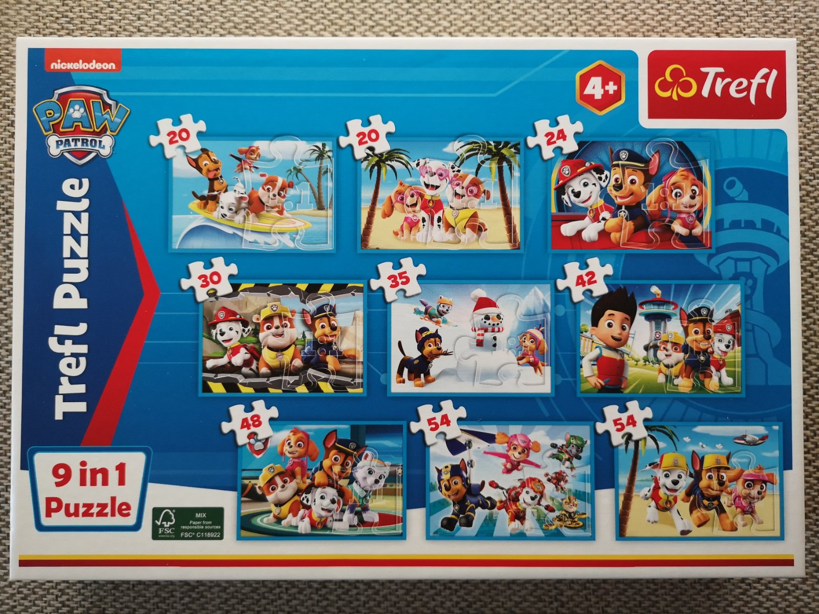 Puzzle Trefl paw patrol 9 in 1, top stav, par krat poskladane.