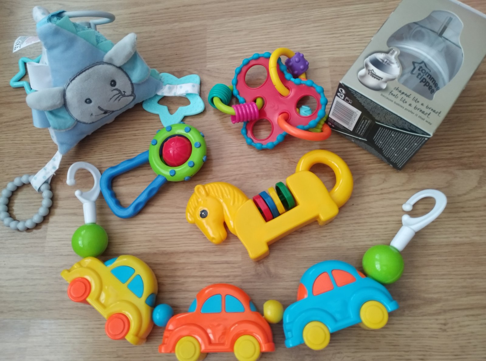 Hračky po jednom dieťati. Ako darček pribalím fľašu od 0+ mesiacov. My sme nevyužili.
