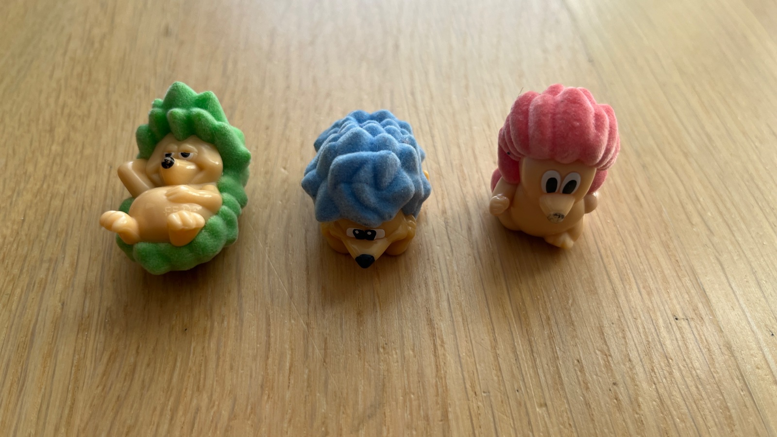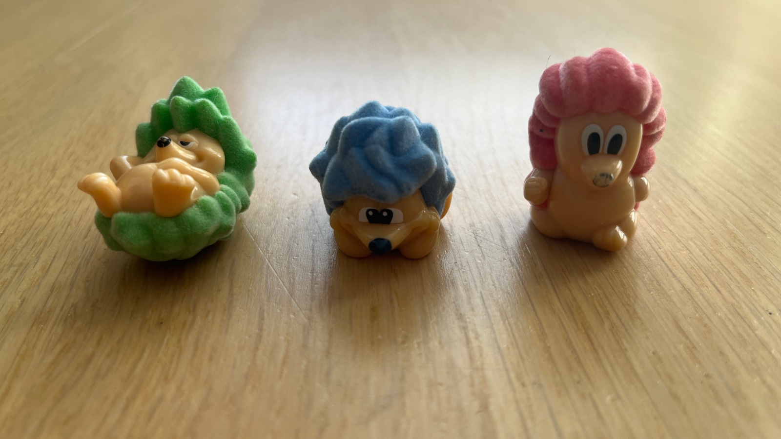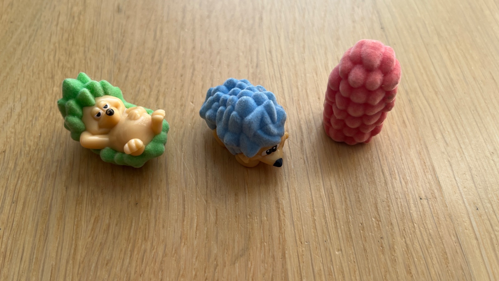 Plastové figúrky ježkov so “zamatovými” pichliačmi.