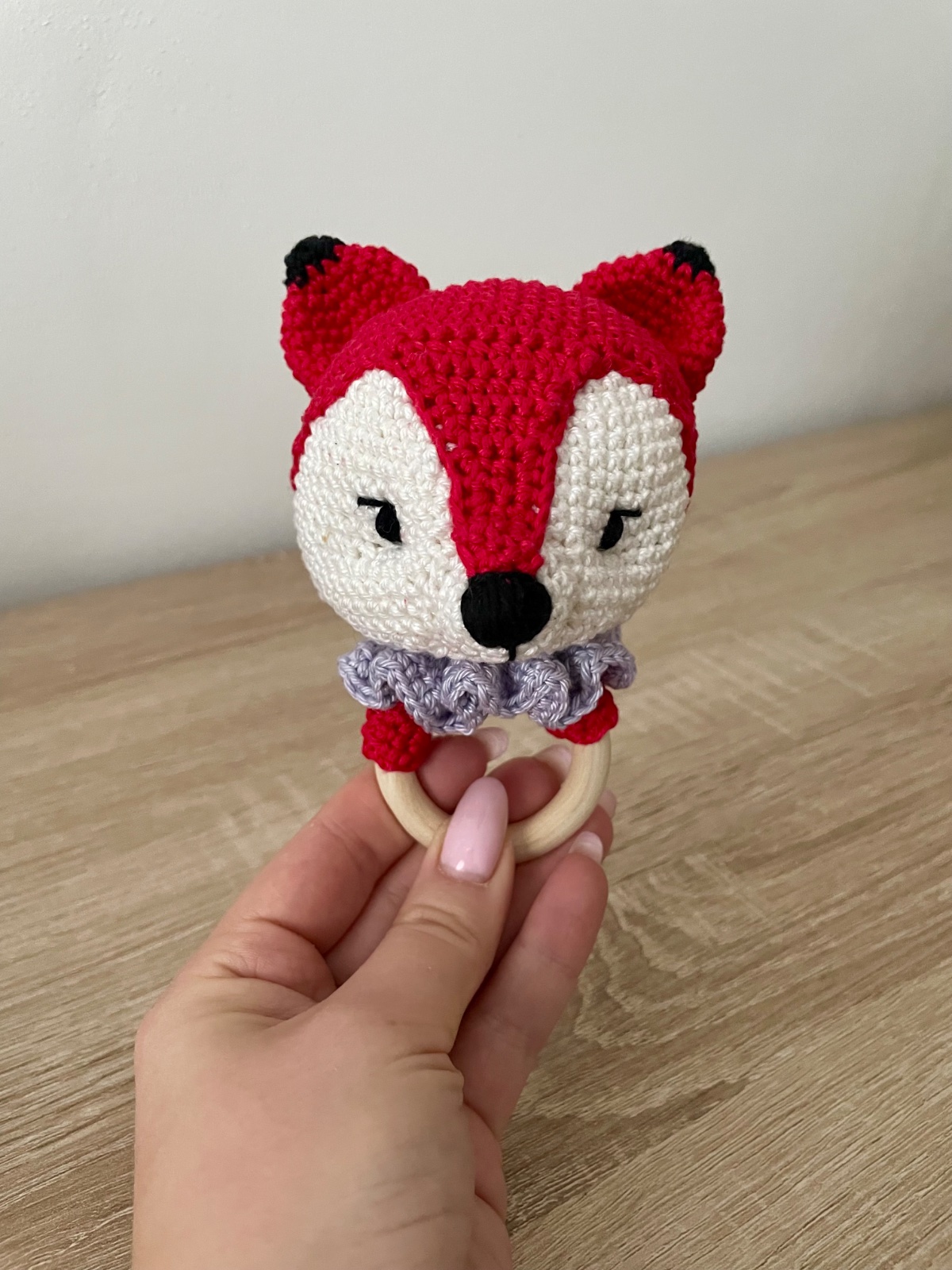 Ručne robené hačkované hračky - vo vnútri je hrkálka, ktorá vydáva zvuk.