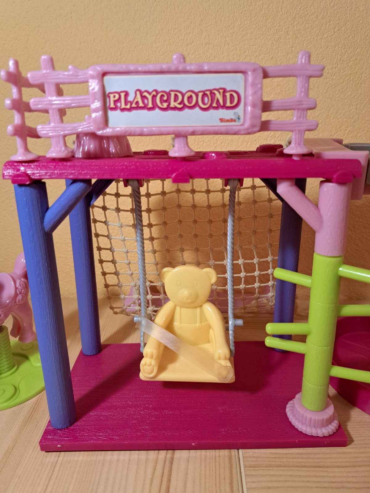 Predám ihrisko značky Simba s dvomi bábikami. Všetko bez porušení. Obsahuje veľa zábavných atrakcií, ako je hojdačka, šmykľavka, lezecká stena... Stav ako na fotke. Pozrite aj ďalšie moje inzeráty, rozpredávam svoju zbierku.