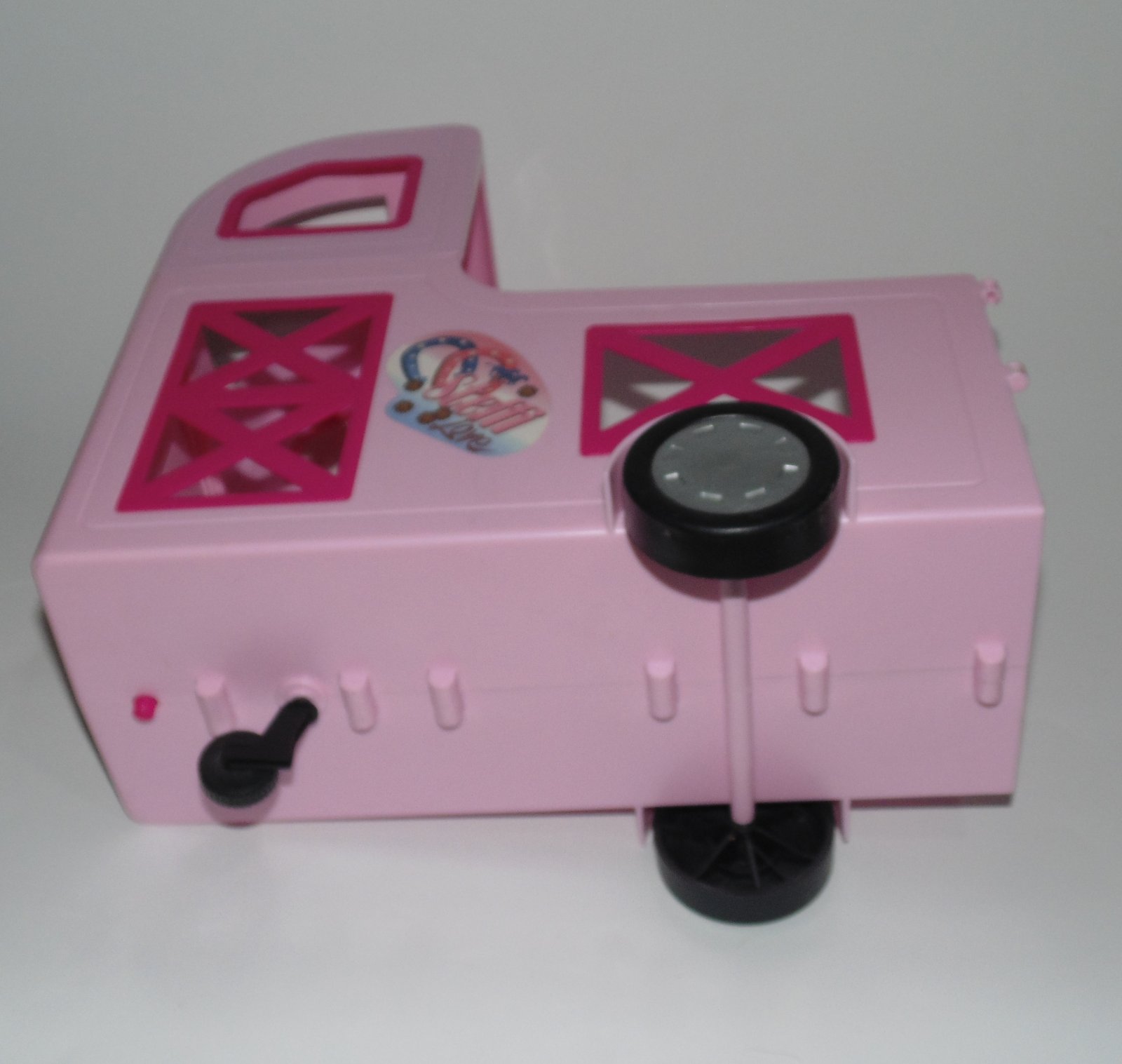 2. Ružový príves pre koníky k barbie bábikám. Výrobca Steffi Simba Toys. Koník nie je na predaj, len príves s tromi kolieskami.