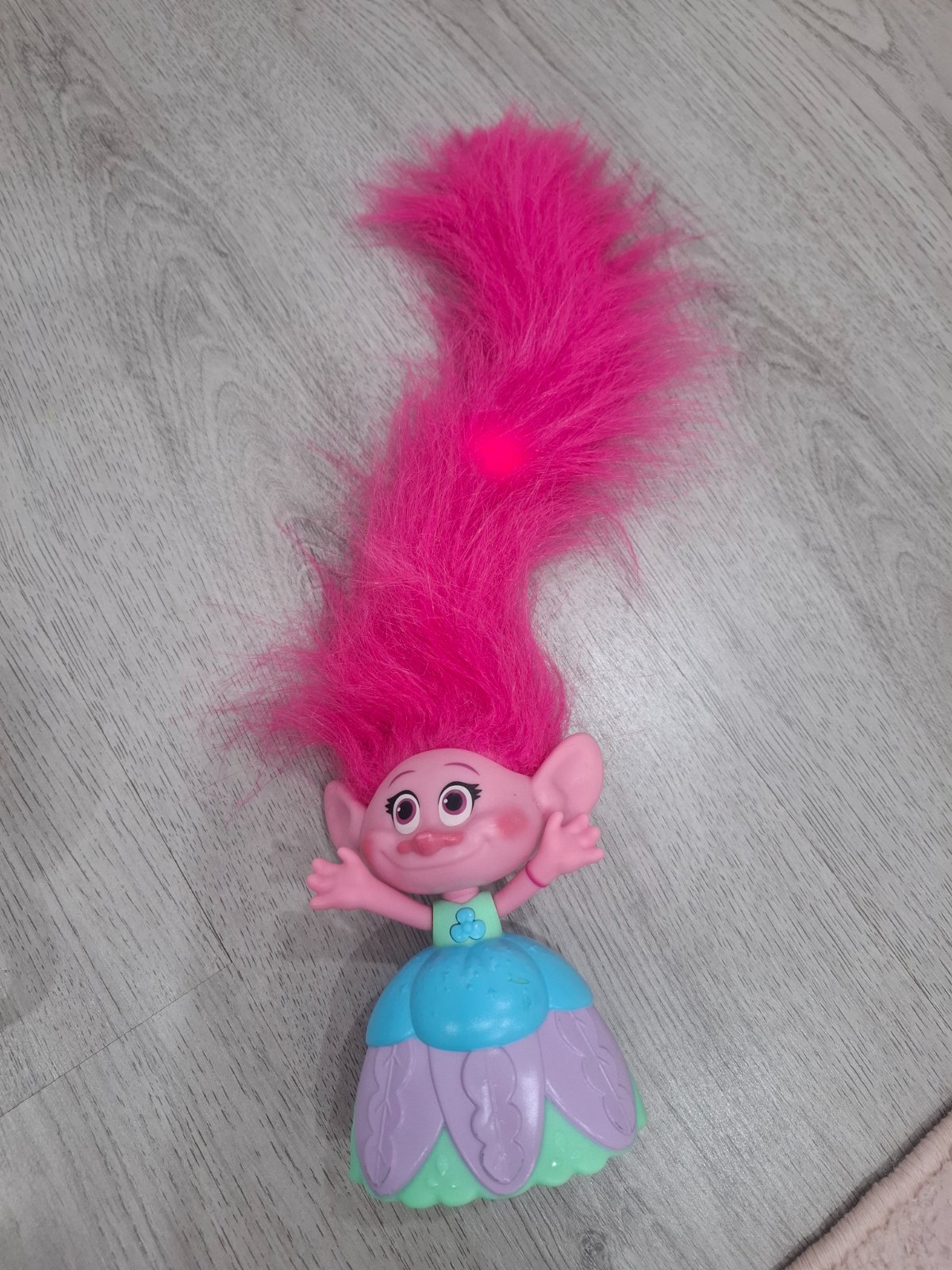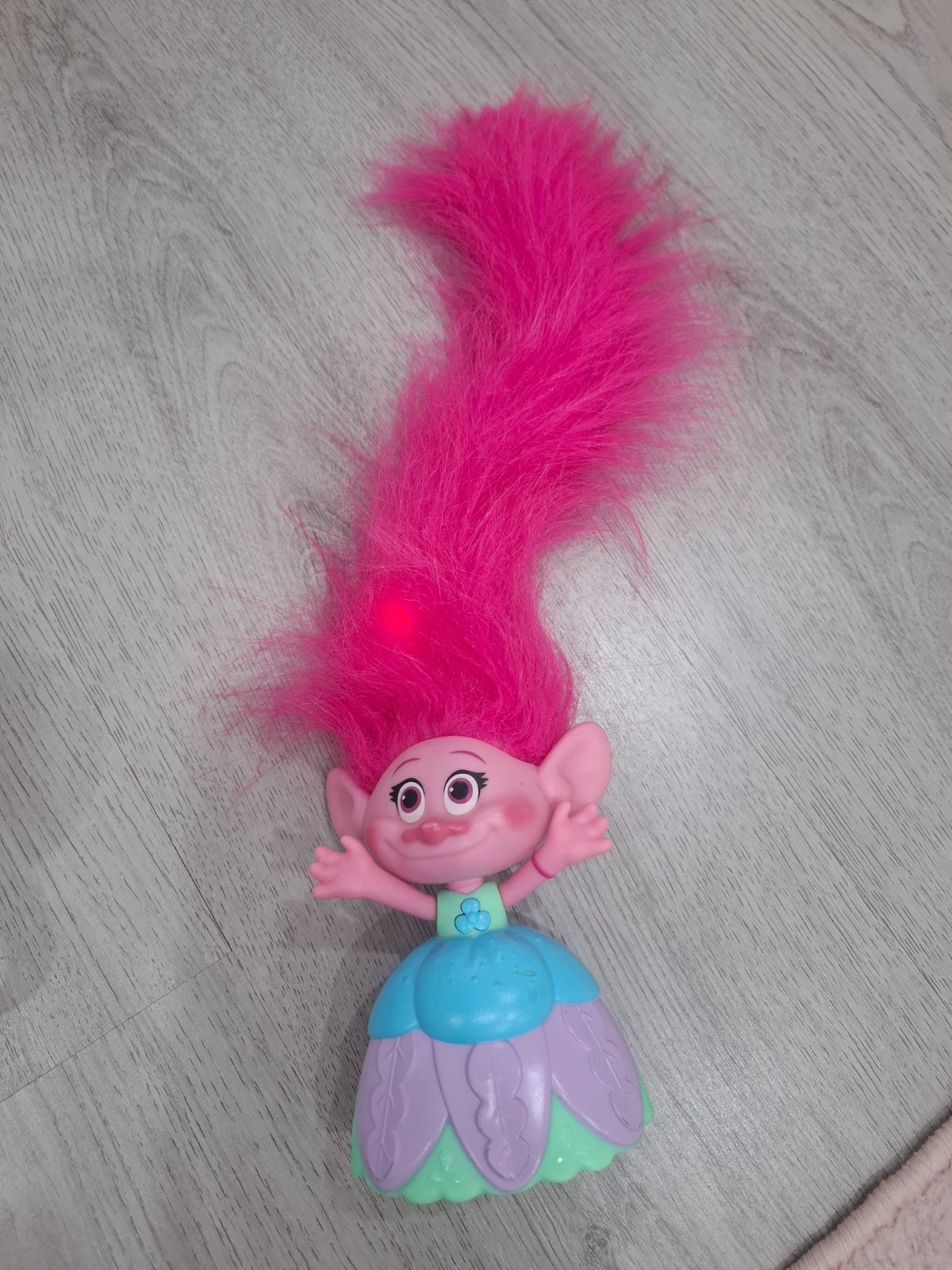Trollo. Svietia mu vlasy a hra po stlaceni gombika. Po pohladkani vlasov hra