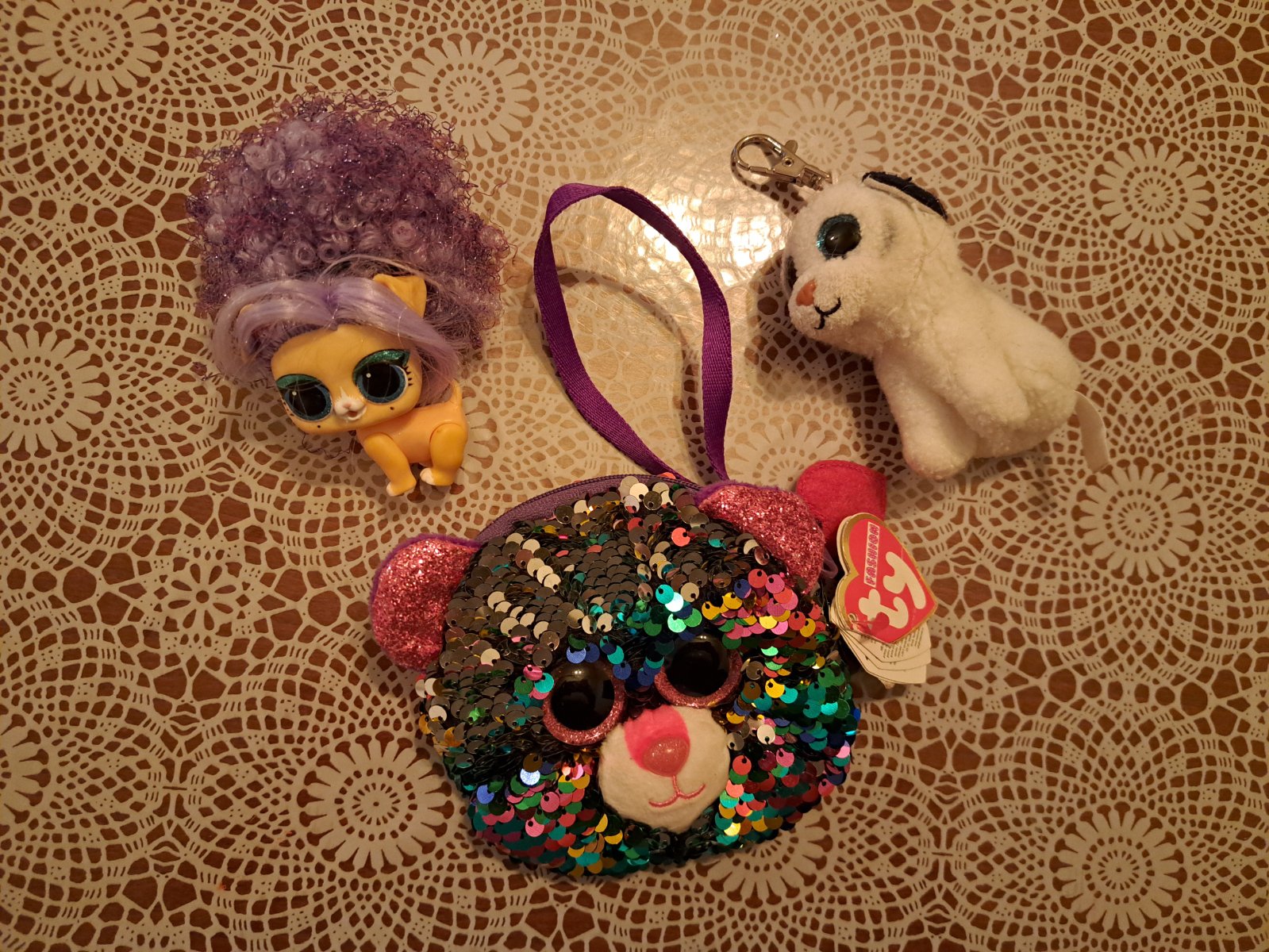 LoL zvieratko, TY psík prívesok, TY peňaženka / mini kabelka s flitrami pre malú paradnicu. Cena spolu