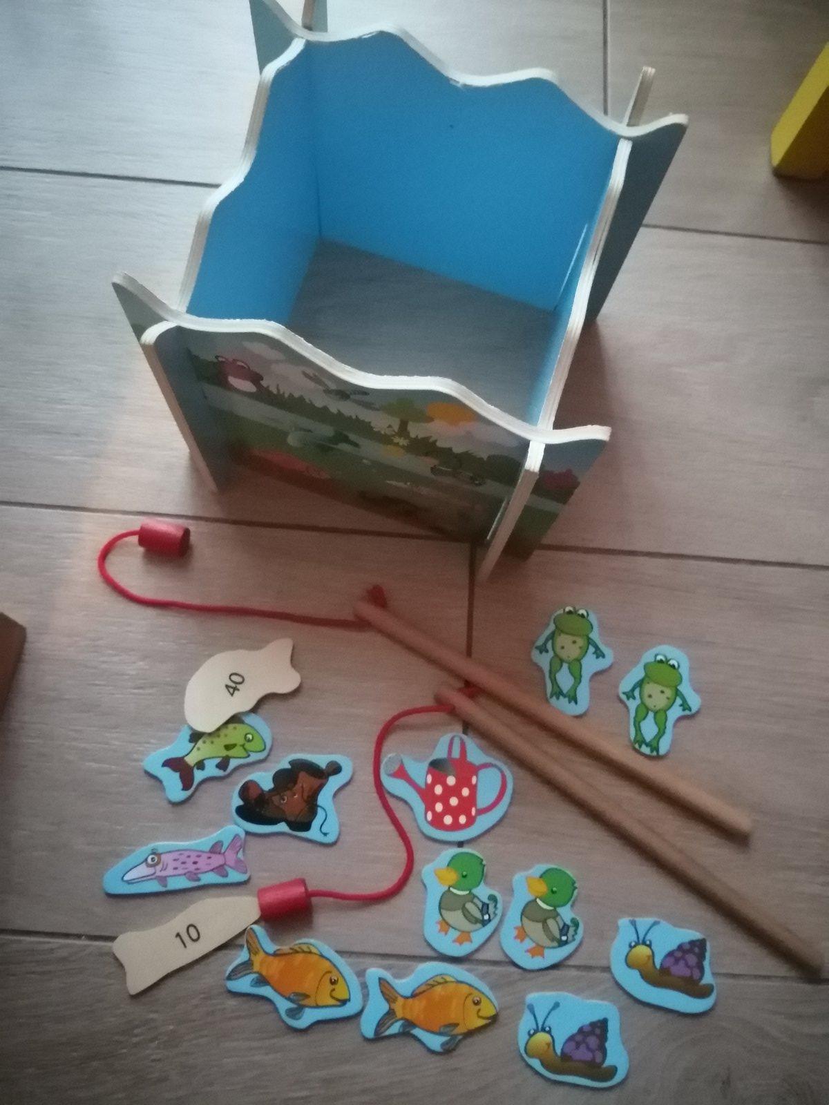 Zábavná rybárska hra z dreva, farebne maľovaná s peknými kreslenými obrázkami, pre deti od 3 rokov.