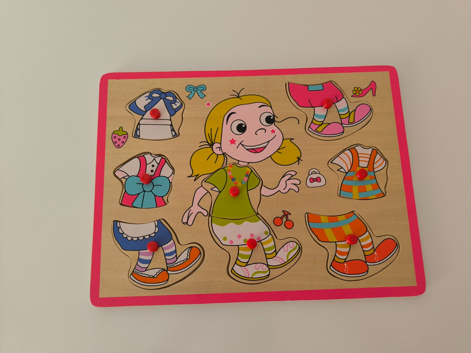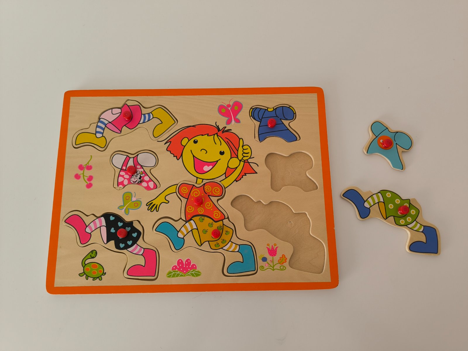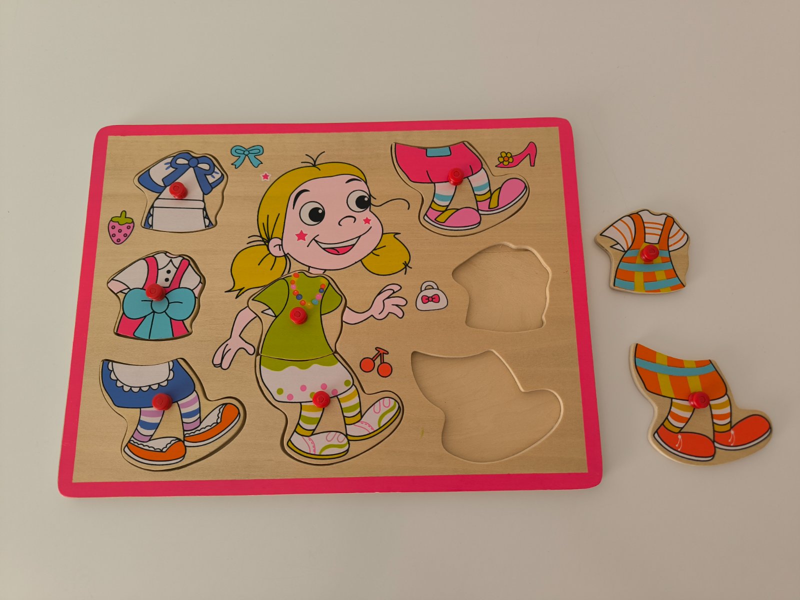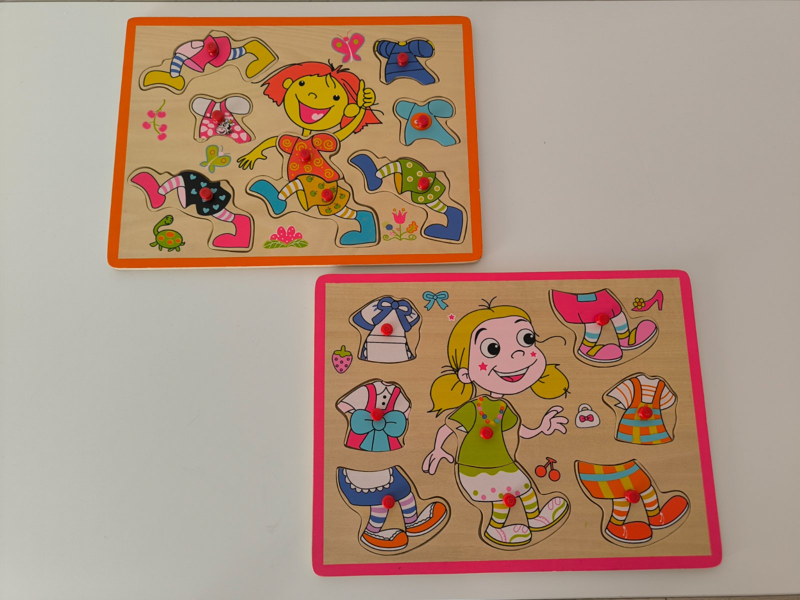 Drevené vkladačky obliekanie chlapec a dievča. Cena spolu.