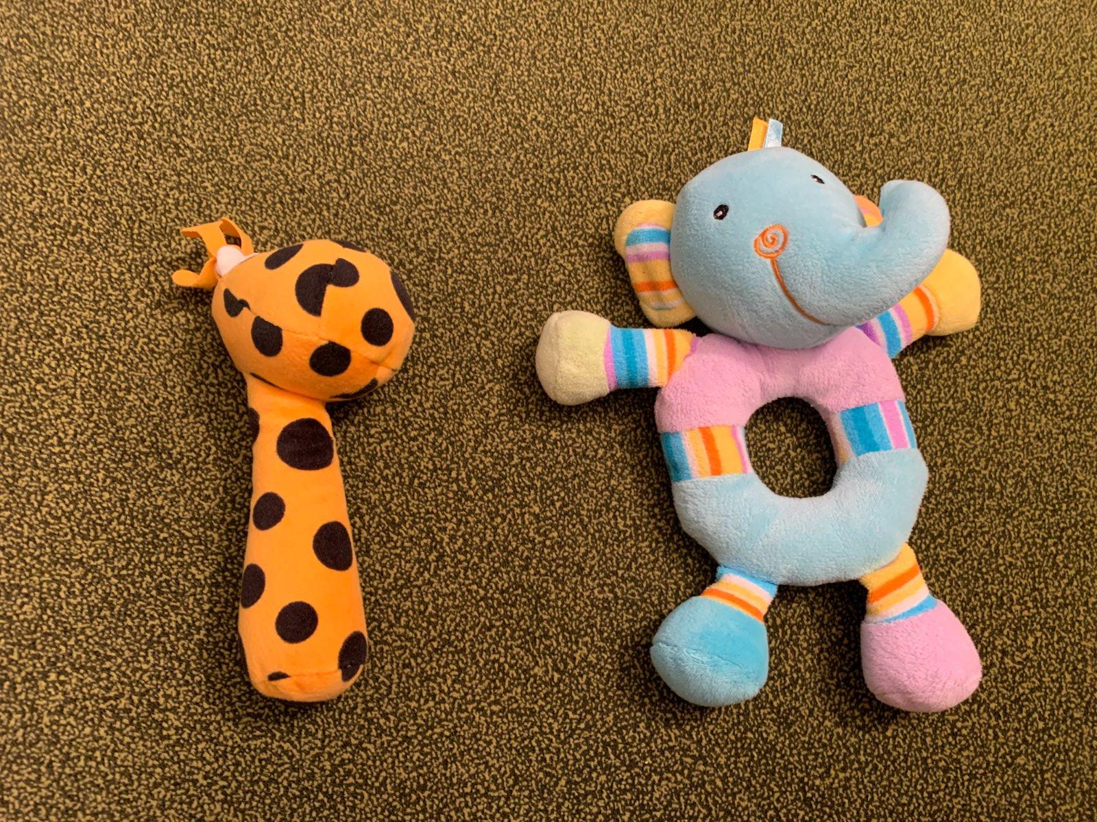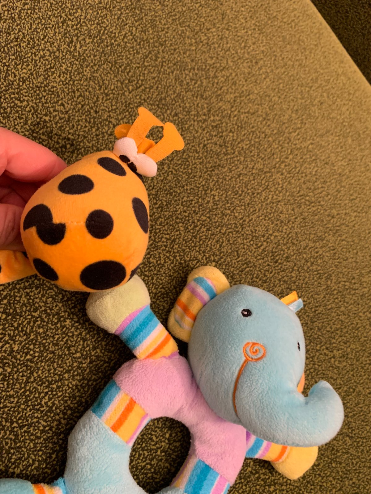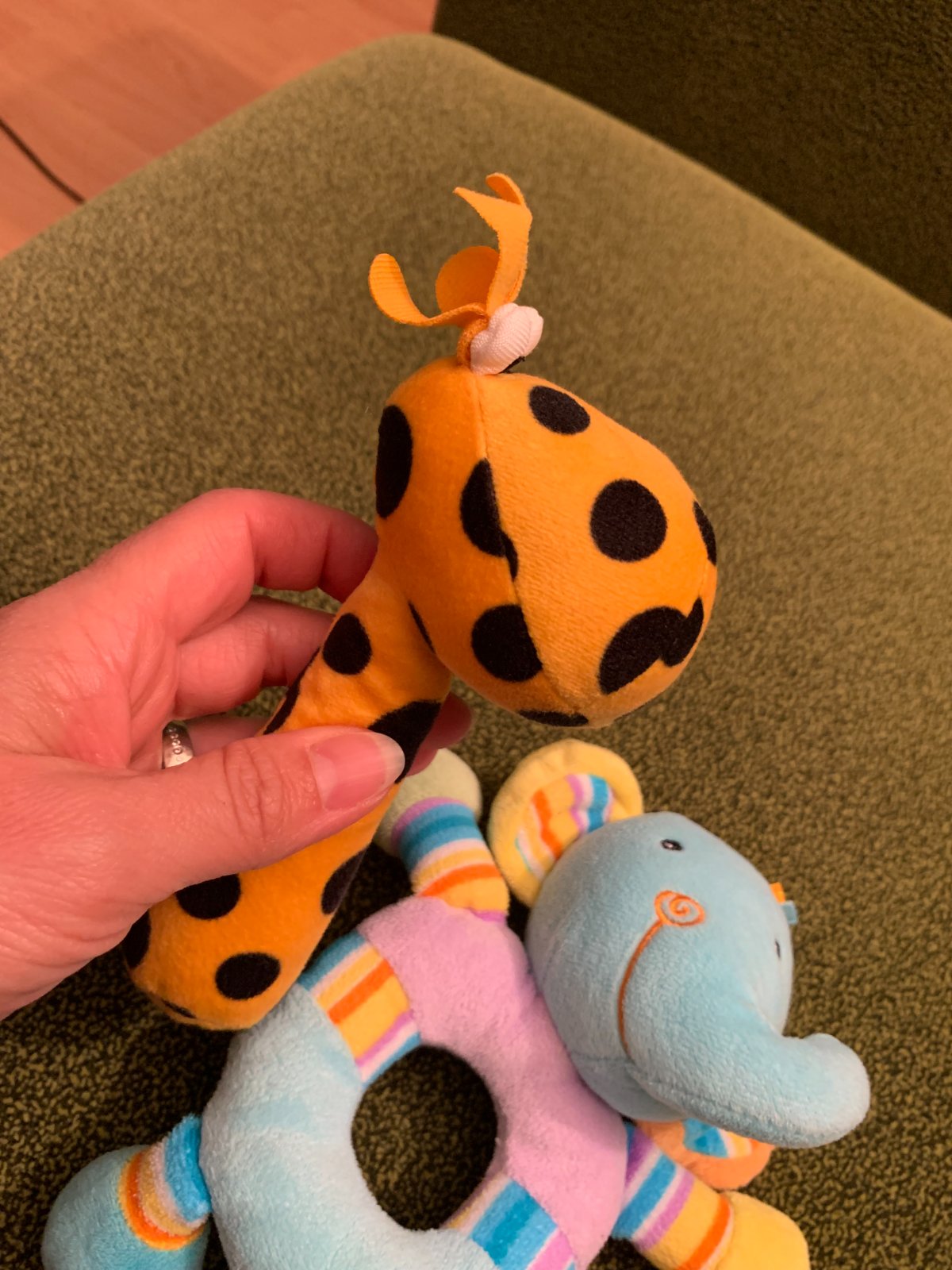 Plyšová hrkálka žirafka a sloník, veľmi dobrý stav bez poškodení.