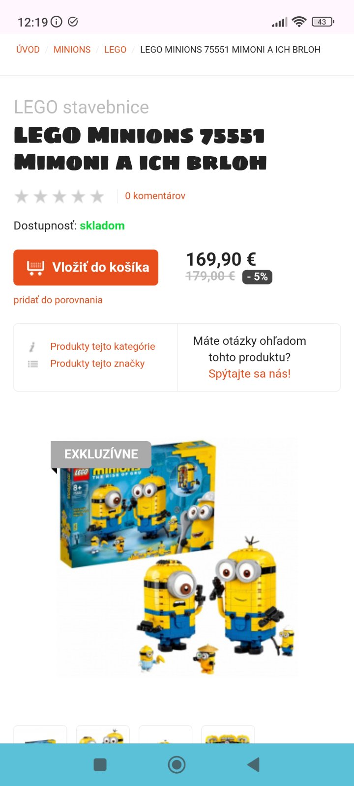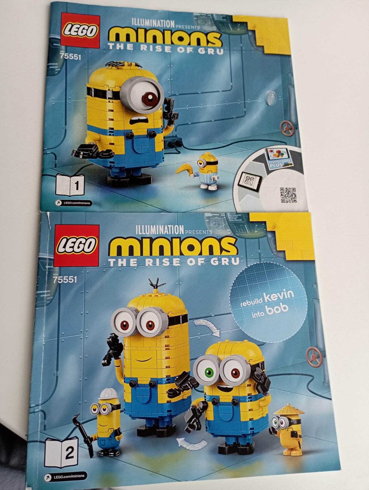 Možnosť zložiť postavičky Bob, Stuart, Kevin. Originál krabica je rozstrihaná na dva kartóny( možem poslať spolu s legom a návodmi ak bude záujem).