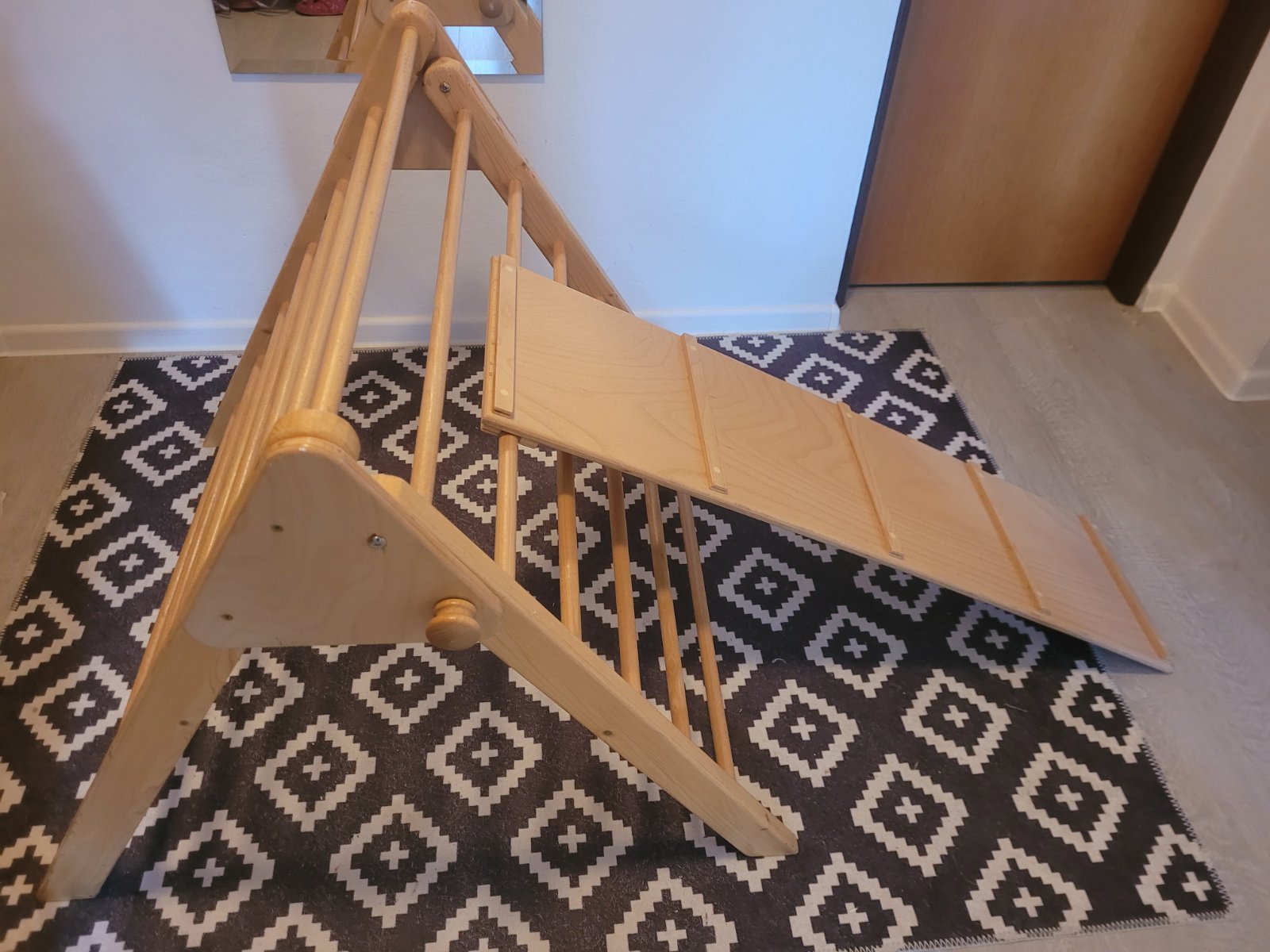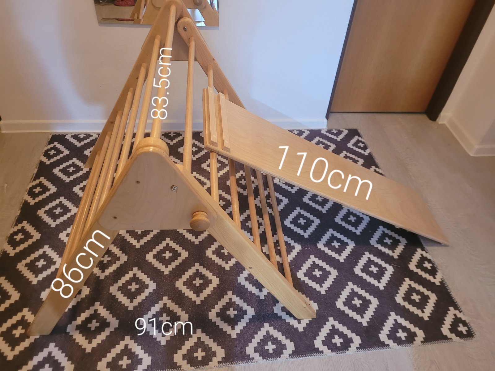 Piklerovej triangel s obojstrannou šmýkačku. Z jednej strany hladká - na šmýkanie. Z druhej strany stupačky / rebrík .