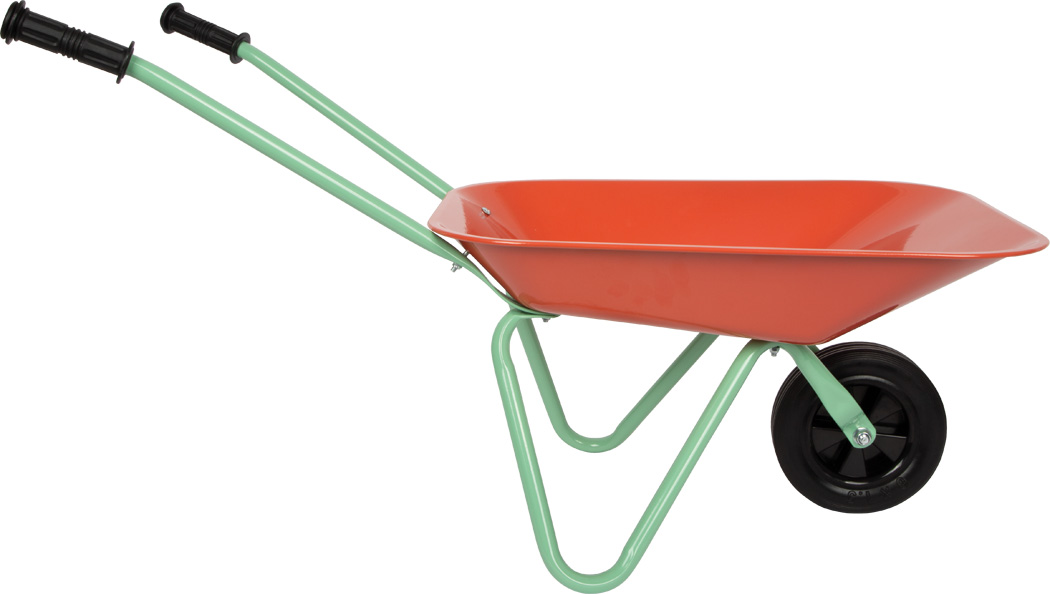 Odolný detský fúrik: Stabilné koleso a pevná konštrukcia zaručujú, že fúrik sa ľahko nakladá aj tlačí.