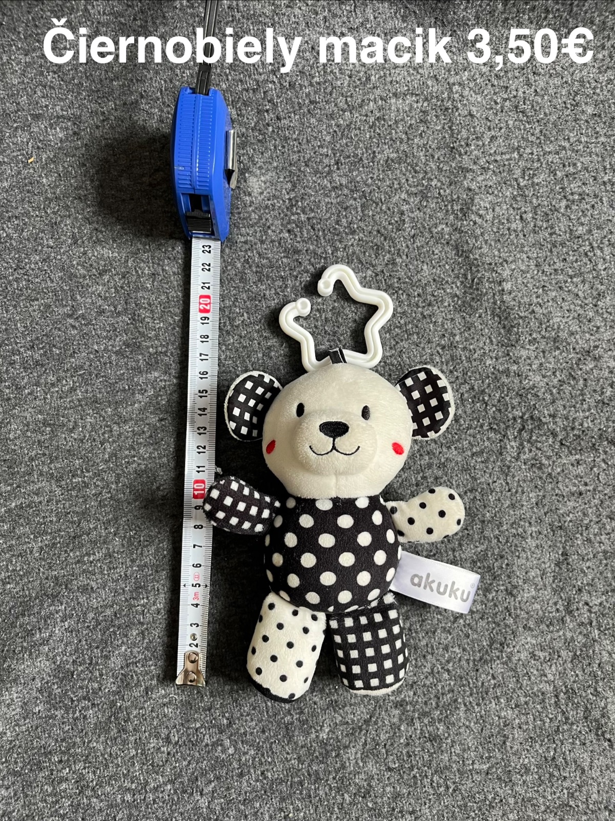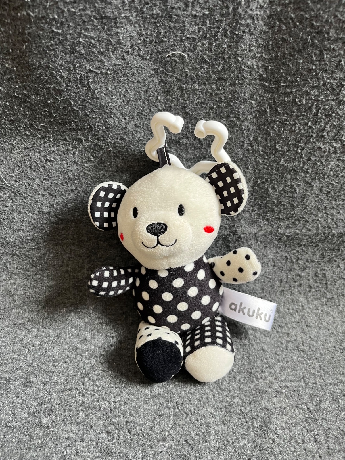 Čiernobiely kontrastný medvedik zavesený len na vajíčku. Top stav