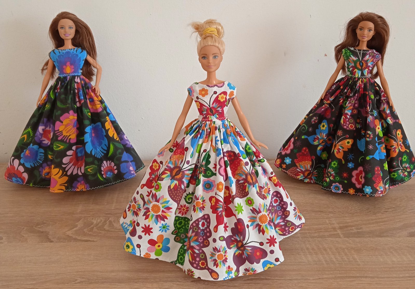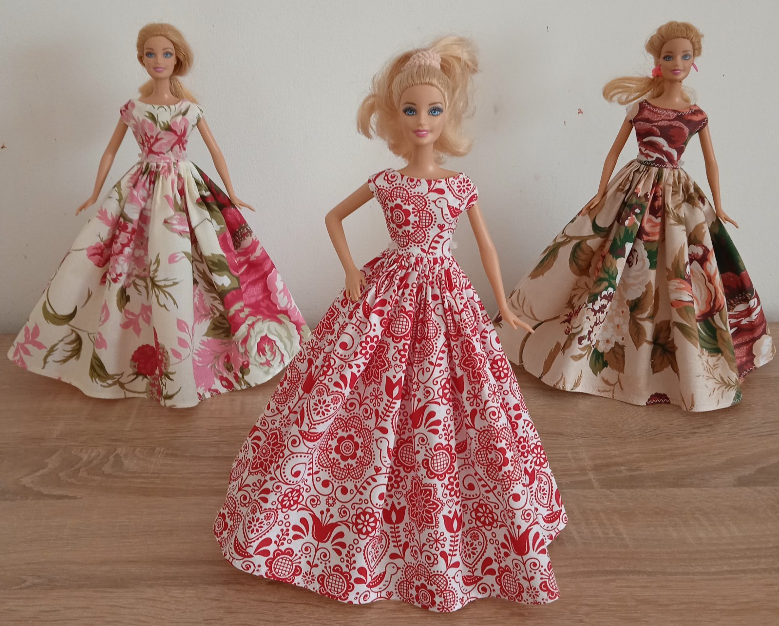 Nové ušité šaty pre Barbie, vzadu na suchý zips, cena za1 kus 4€+3,50€ doporučené poštovné