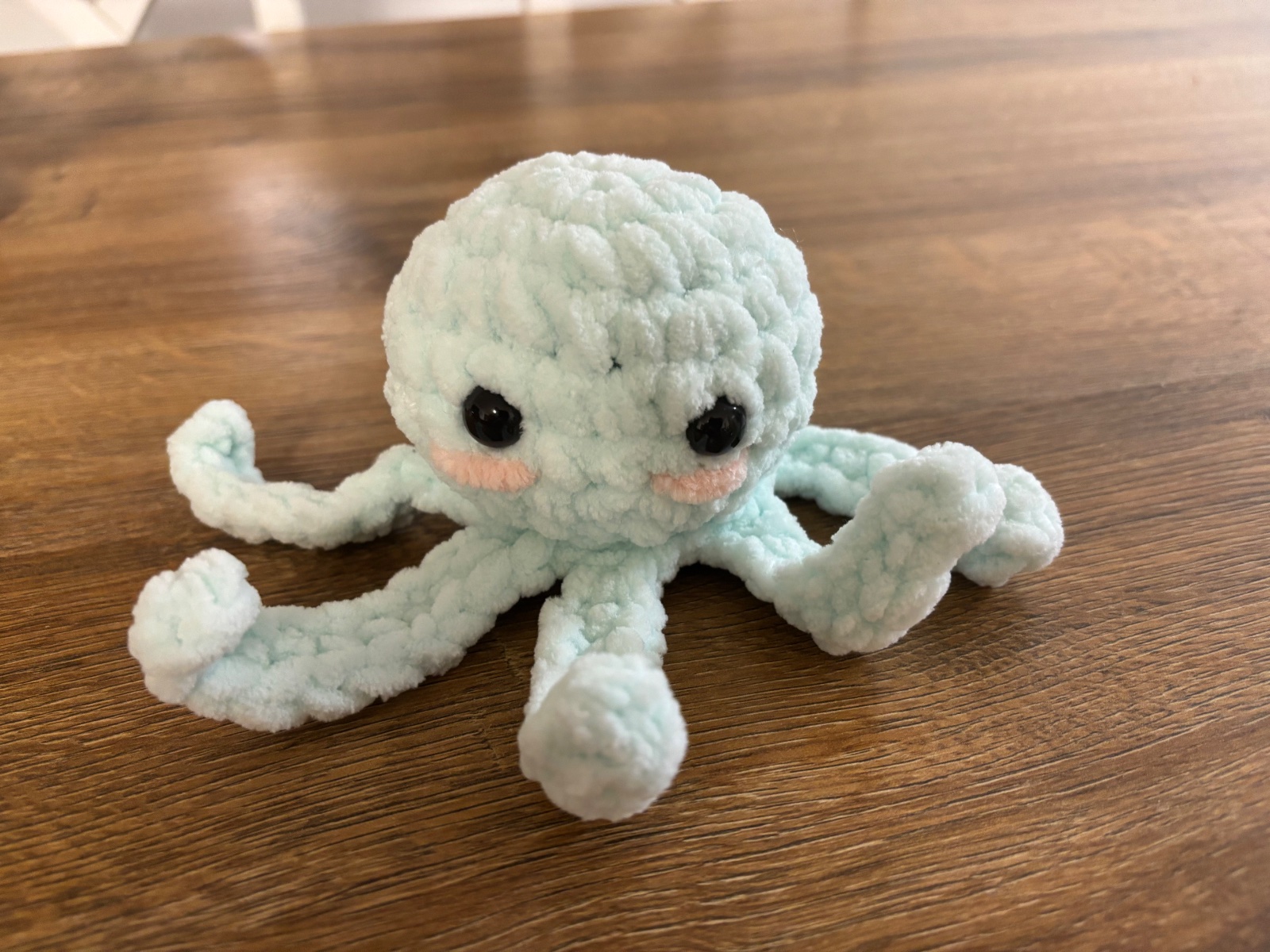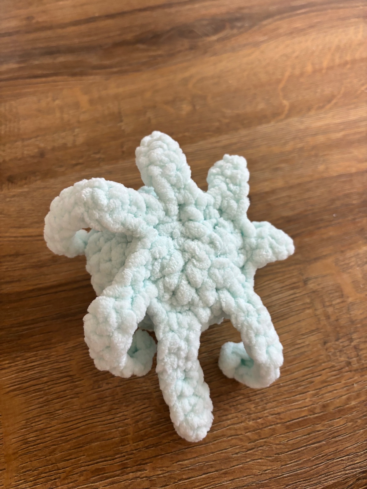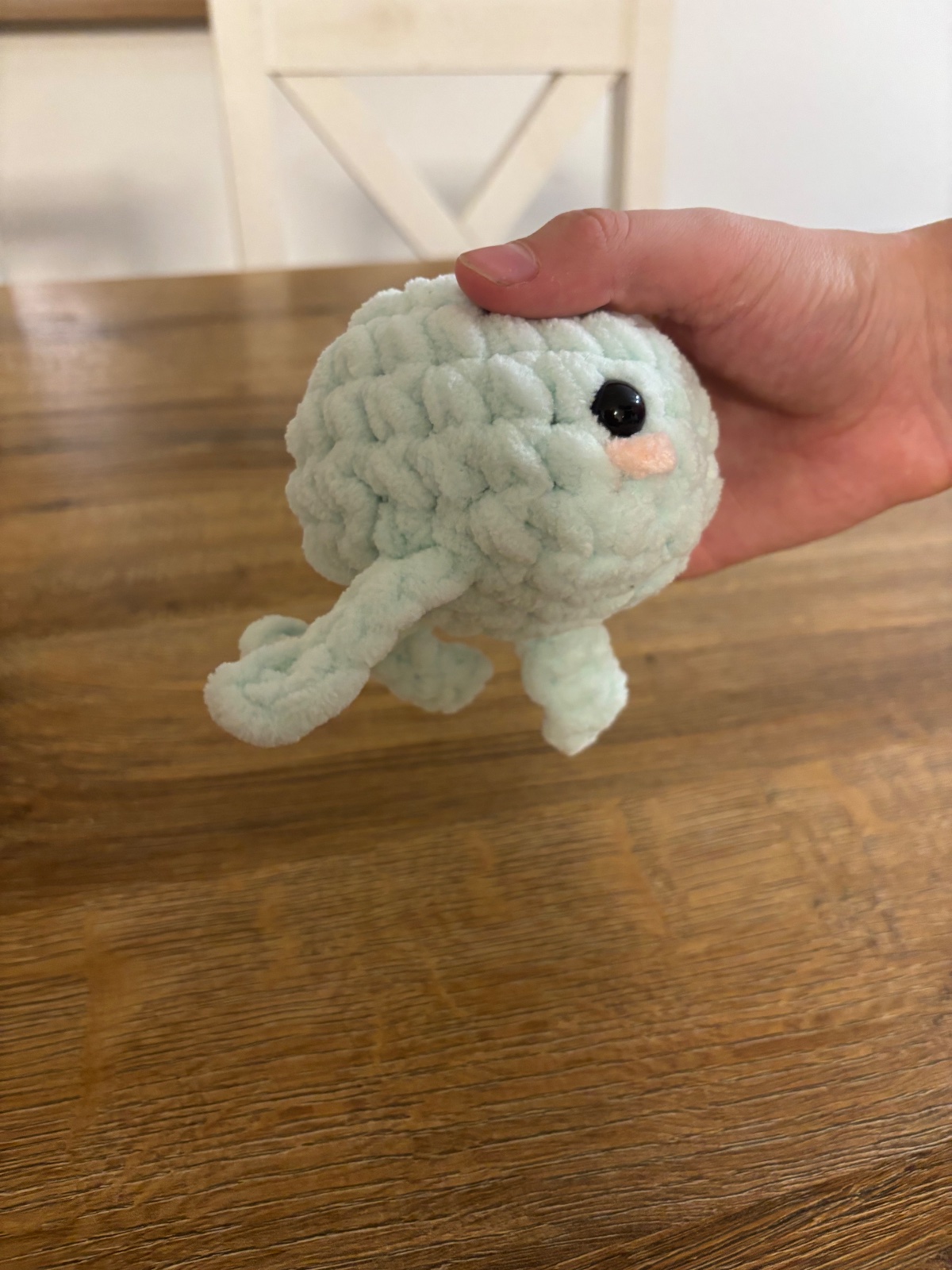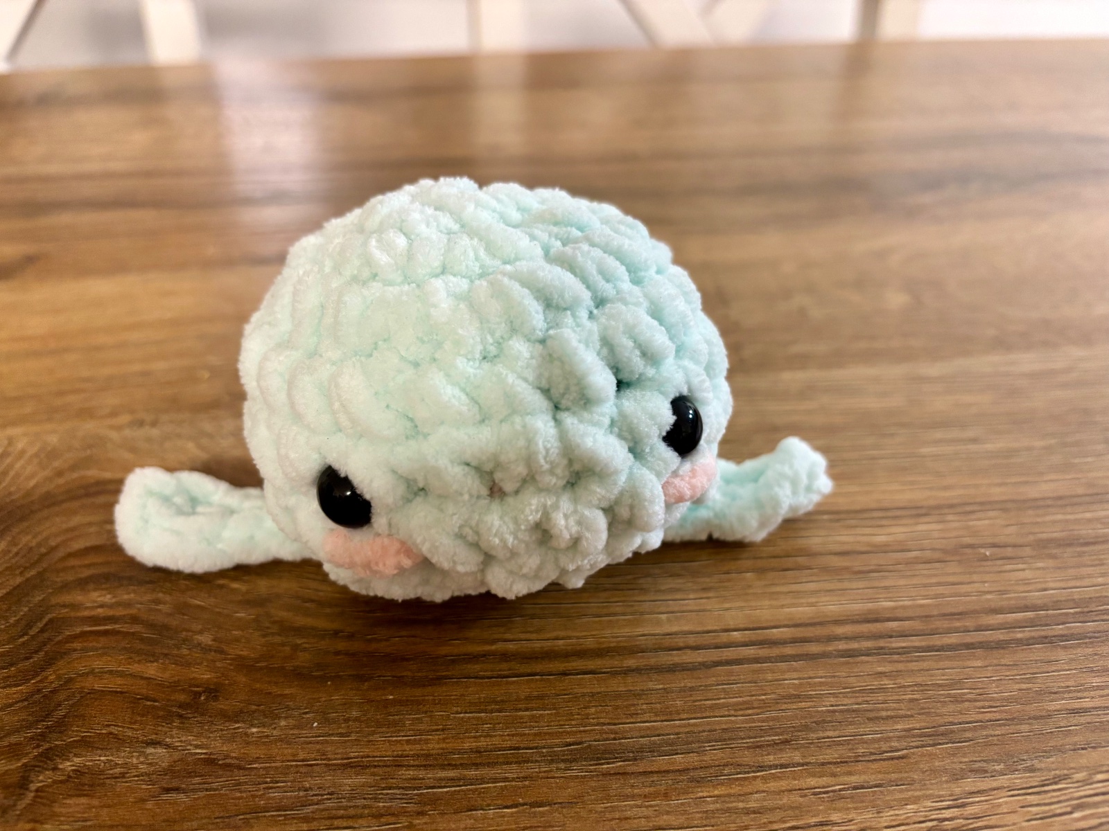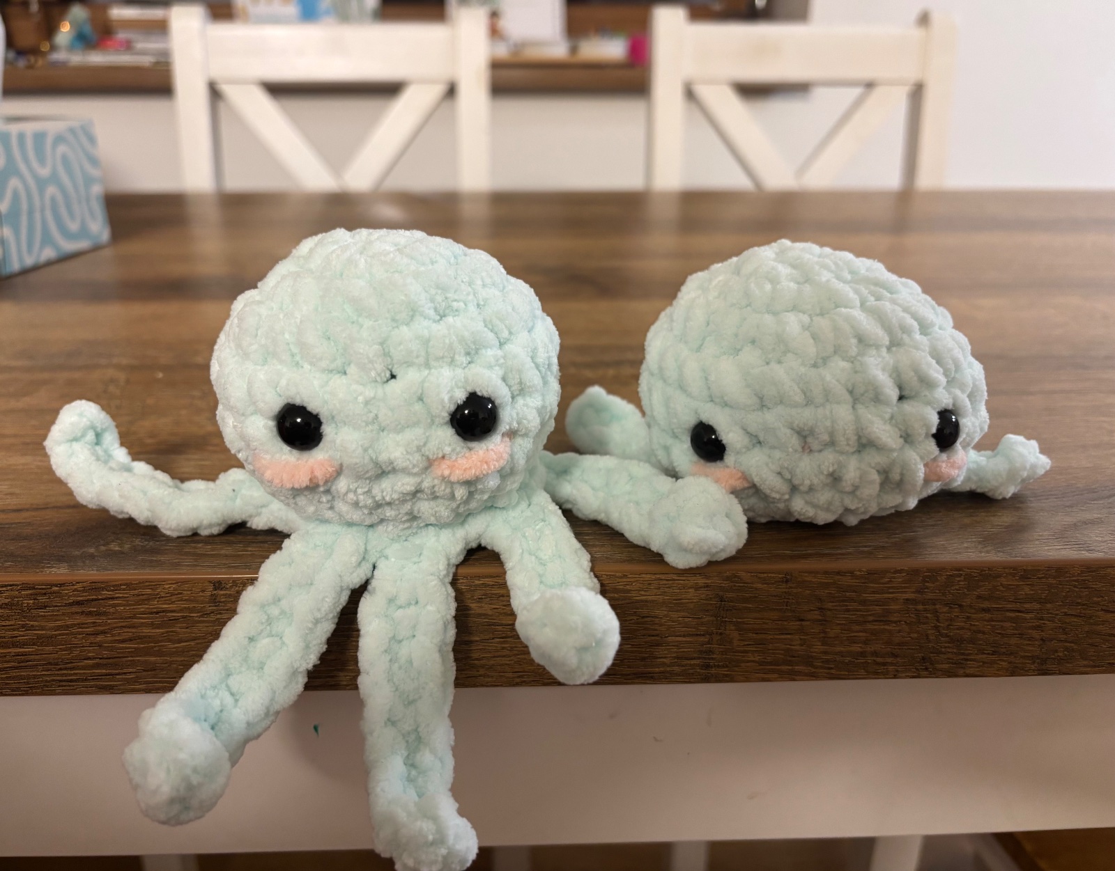 Ručne hackovana nádherná chobotnička s chapadielkami a velrybka. Hand made. Vhodne ako darcek. Hackovala moja 10 rocna dcérka. Chcela, aby jej tvorba urobila radosť niekomu inému. Urcite sa poteší nejaké dievčatko alebo aj chlapček. Cena spolu. Nádherná farba baby blue. Makkucka plnená antialrgickou náplňou, aká sa dáva do vankúšov.