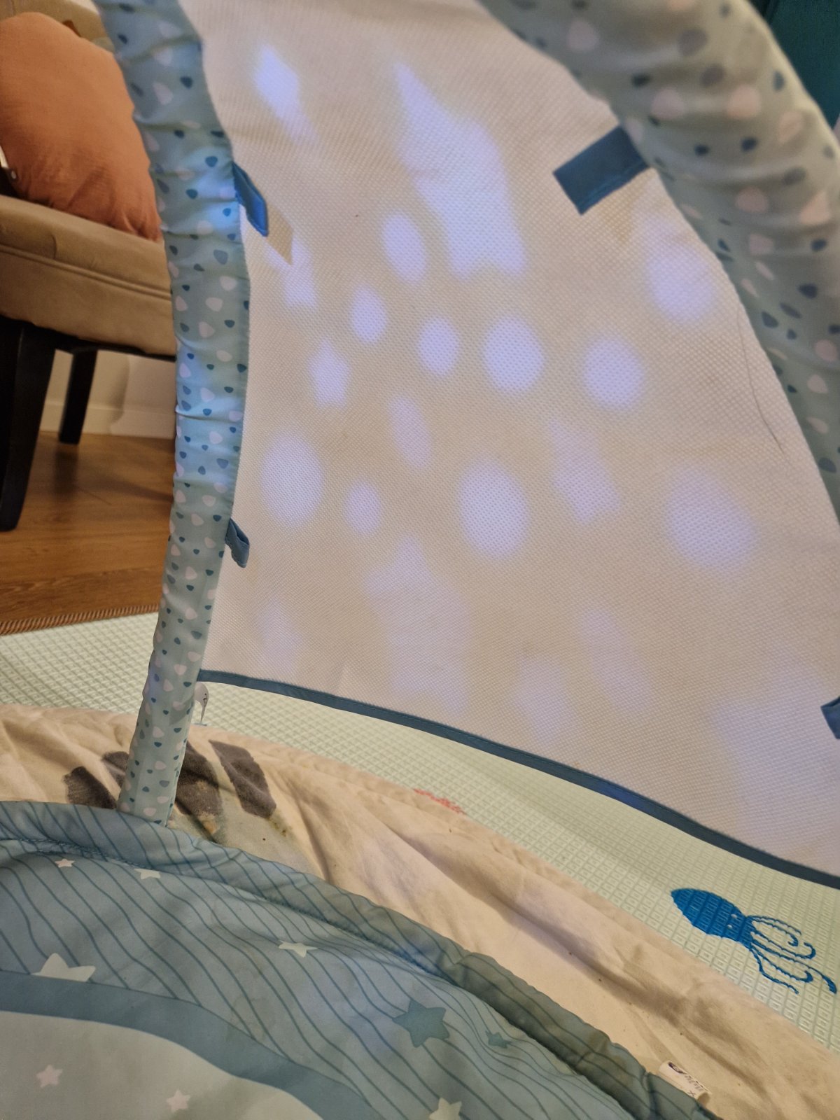 Krásna hracia deka pre bábätko je v top stave svieti hra je ako nova malo používaná vhodná aj ako dar nákupná cena bola 60€