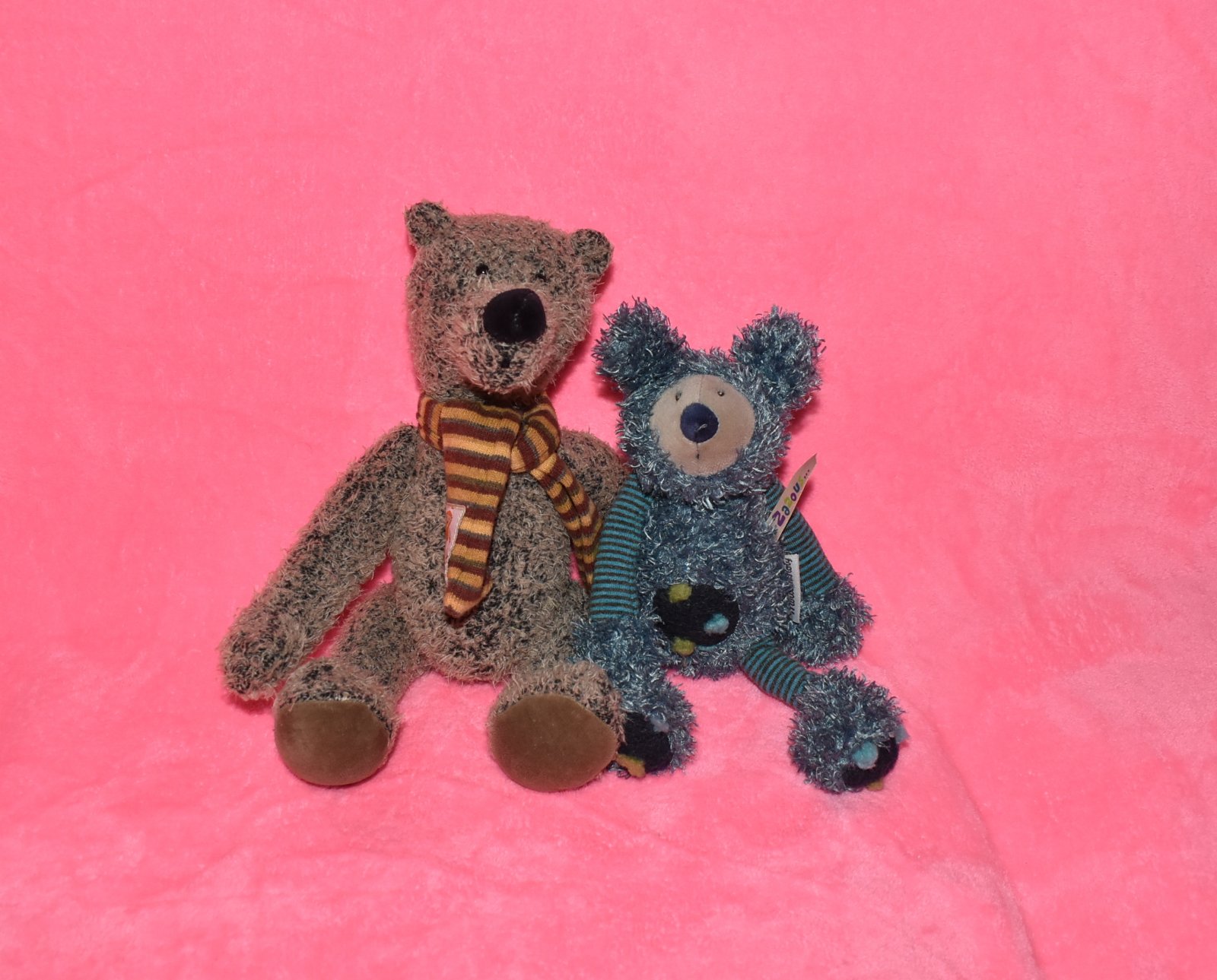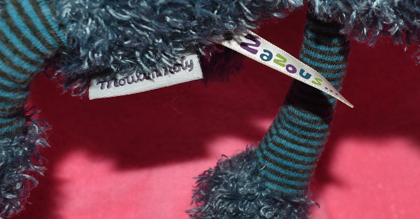 Tento plyšová koala z rodiny Les Zazous je vyrobená z mäkkej načechranej modrej látky. Má stripné nohy a ruky, roztomilý modrý gombík a vyvýšené modré a žlté škvrny na nohách a bruchu.