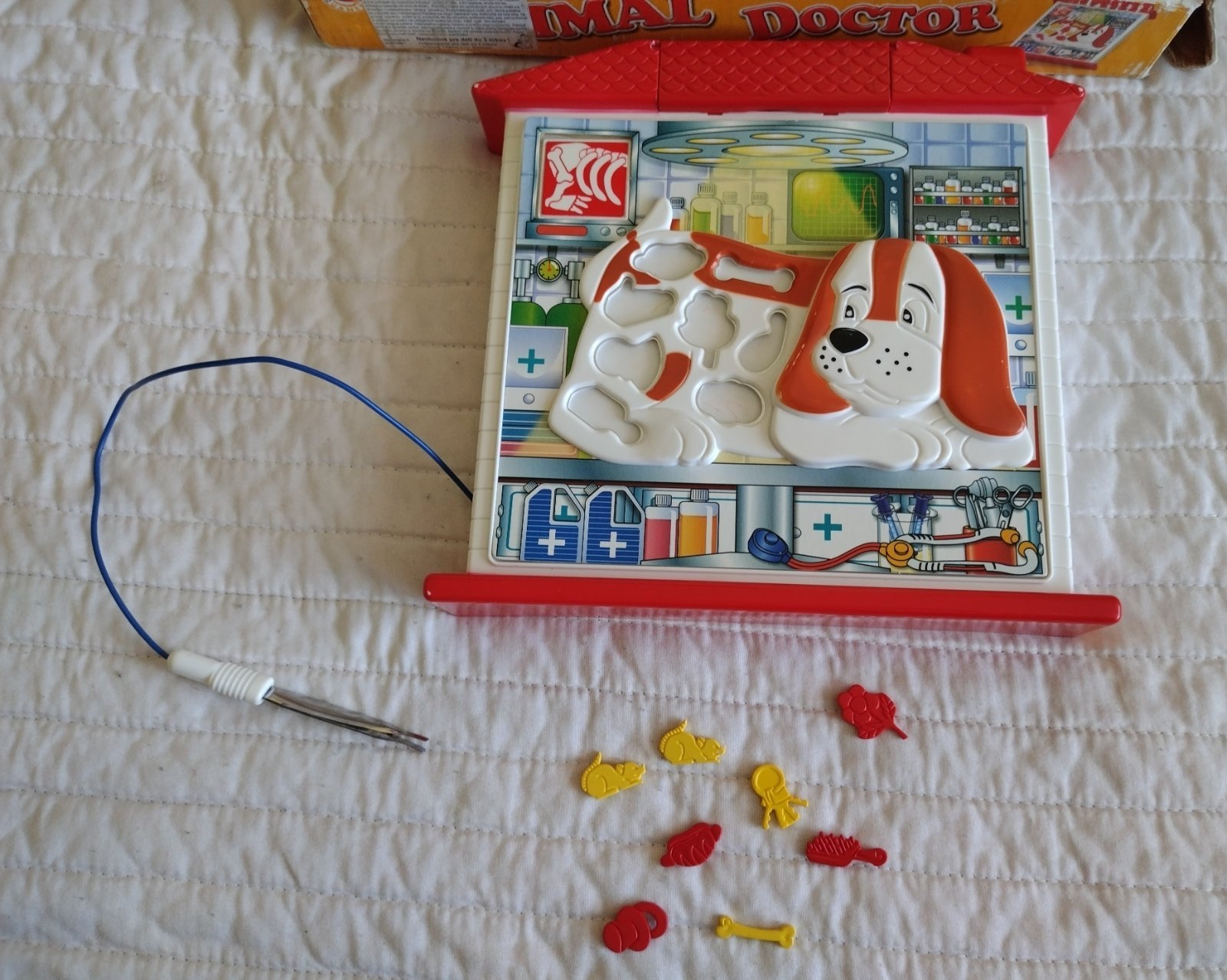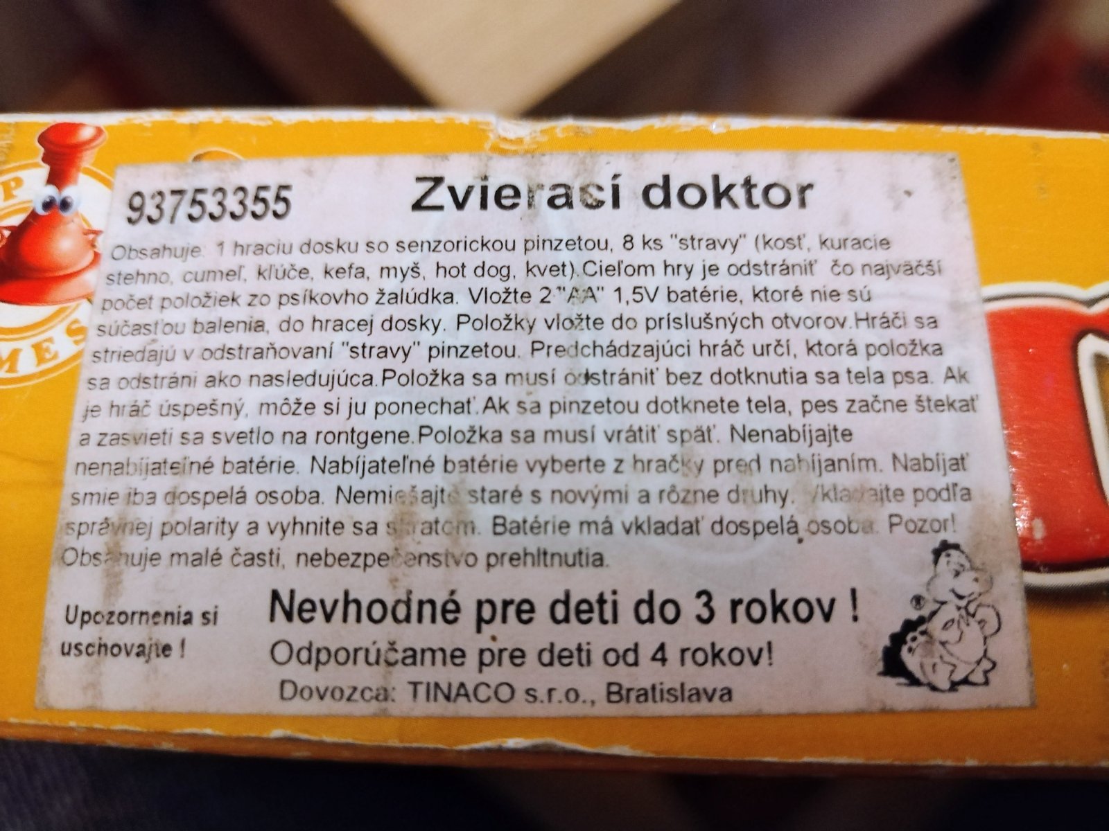 Cieľom hry je odstrániť čo najväčší počet položiek zo psíkovho žalúdka, krabica je poškodená.
