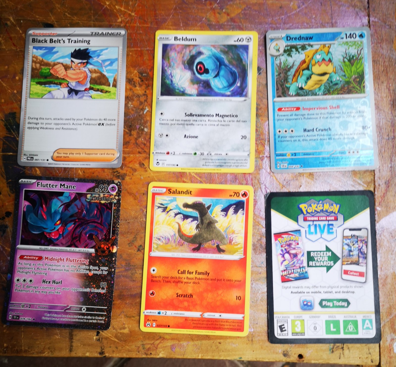 Syn ponúka túto sadu 20 ks pokémonových kariet, ktorú sám zhotovil. (Karta na online hranie nebola využitá)