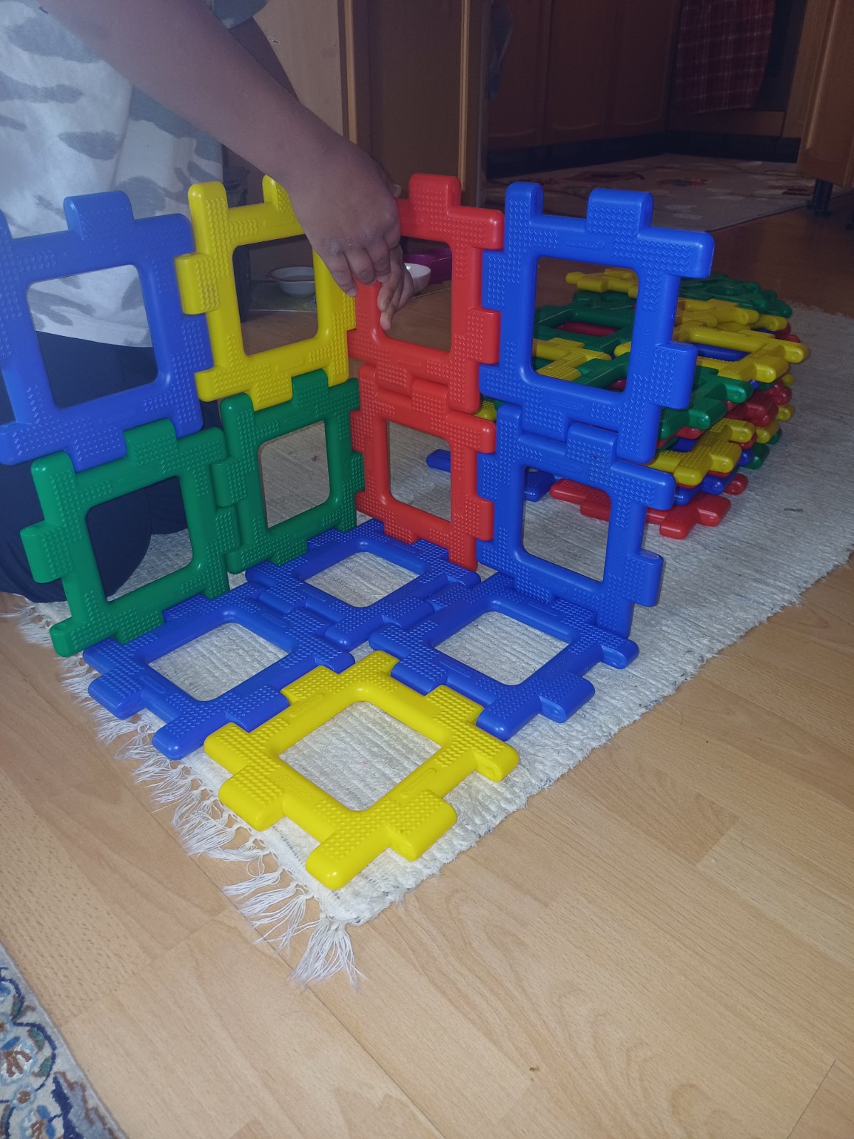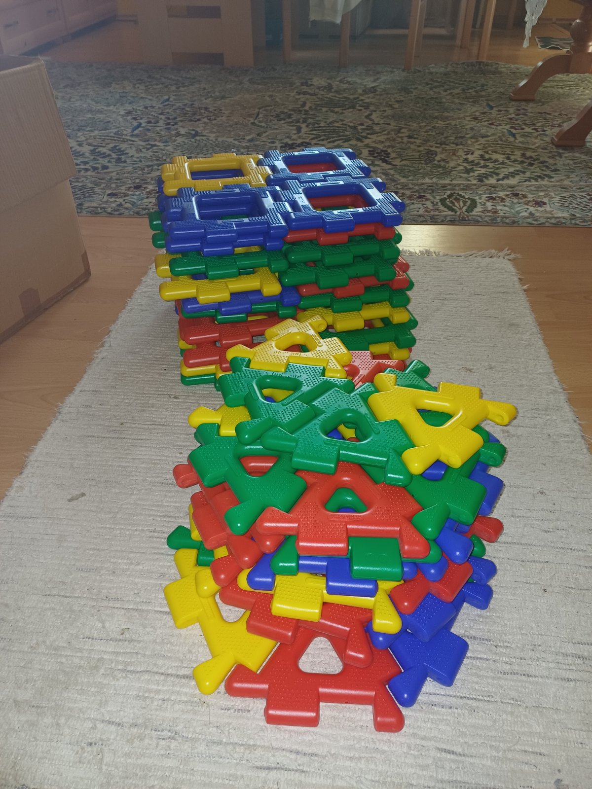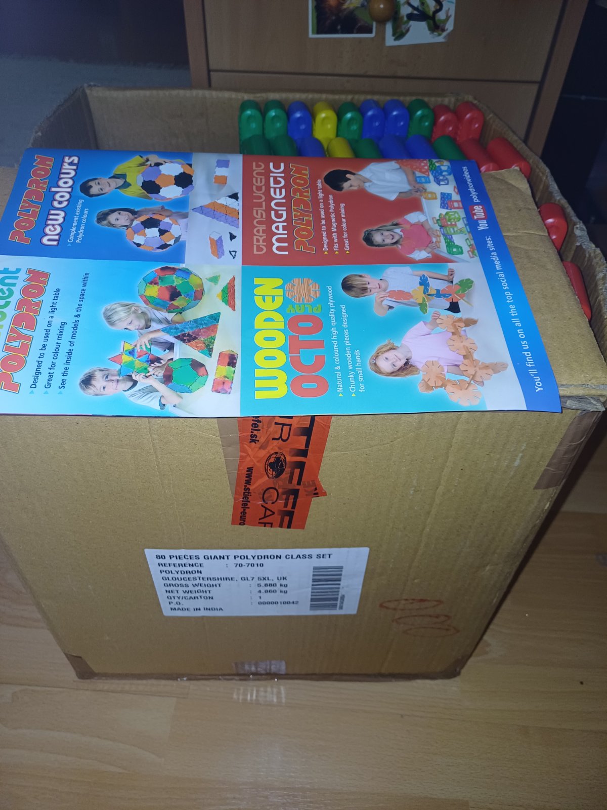 Predám gigantickú sadu Polydron vo výbornom stave,nepoškodenú.Sada obsahuje 80 ks.Štvorec má hranu cca 7,5 cm a trojuholník cca 6,5 cm.Sada obsahuje 40 ks štvorcov a 40 ks trojuholníkov.Osobný odber.