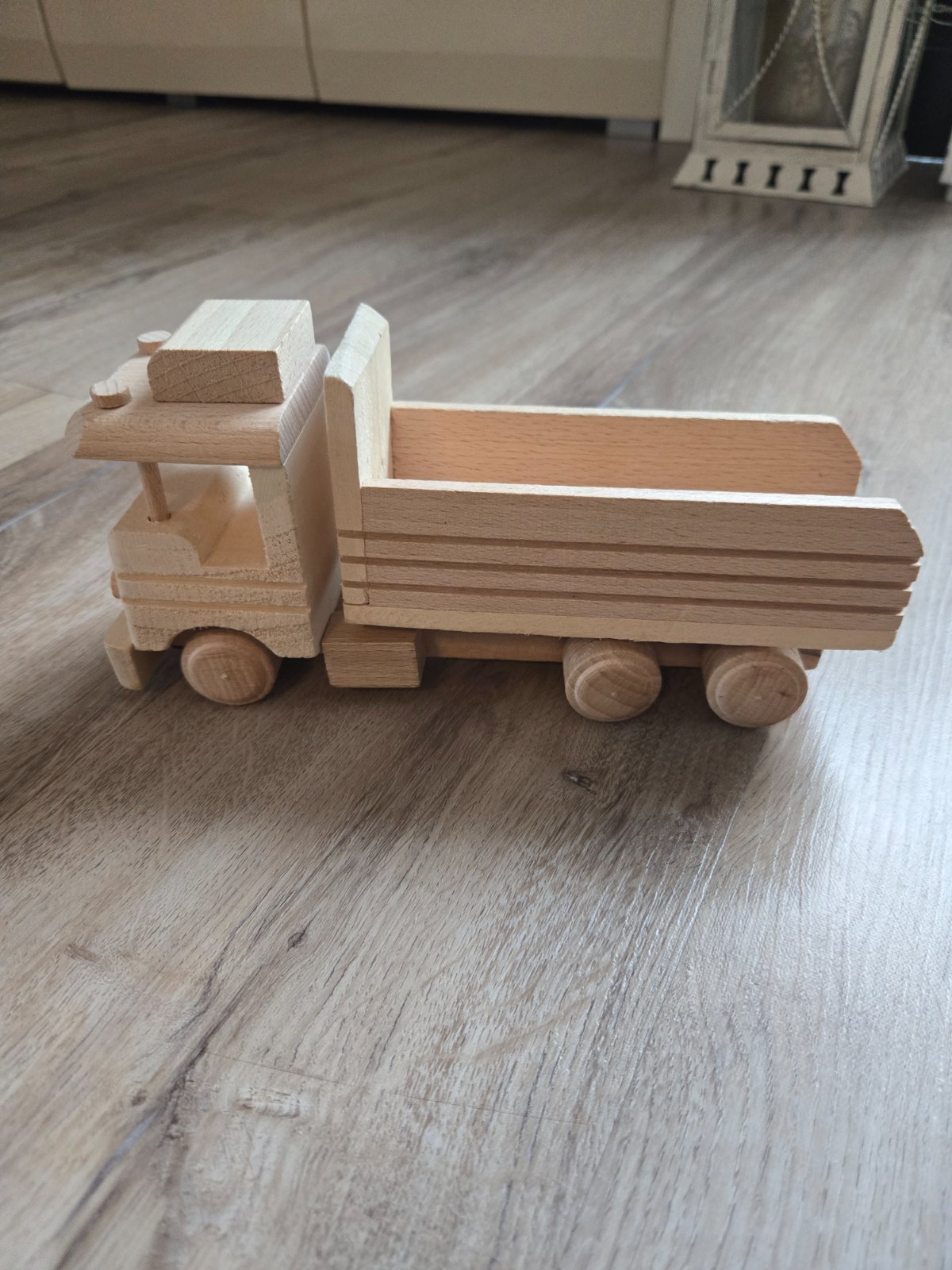 Drevené nákladné autíčko.