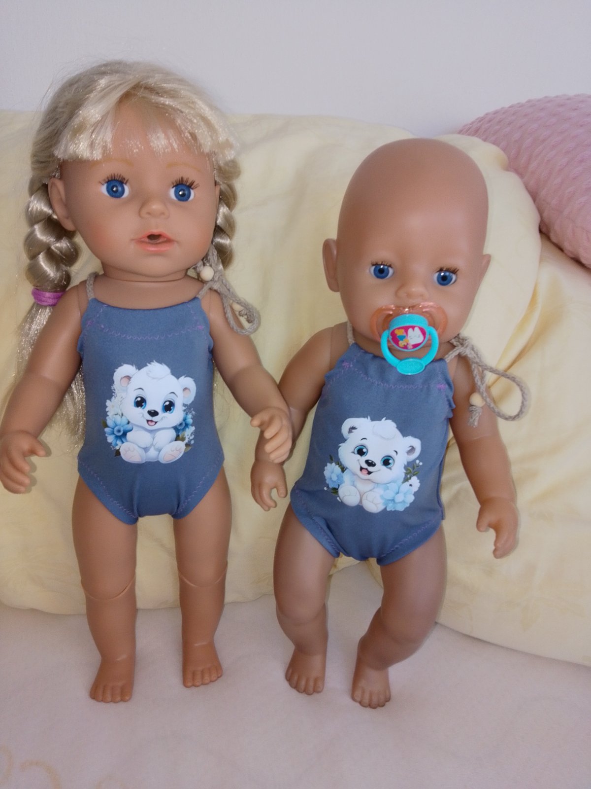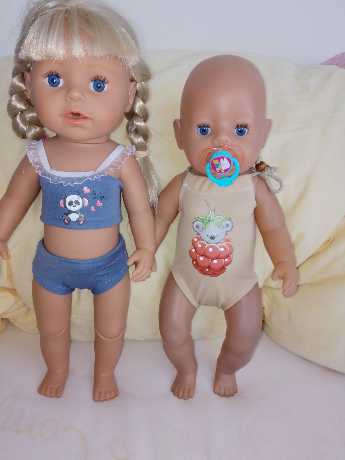 oblečenie je šité, nehrané. Vhodné pre bábiku baby born 43 cm a staršia sestricka 43cm