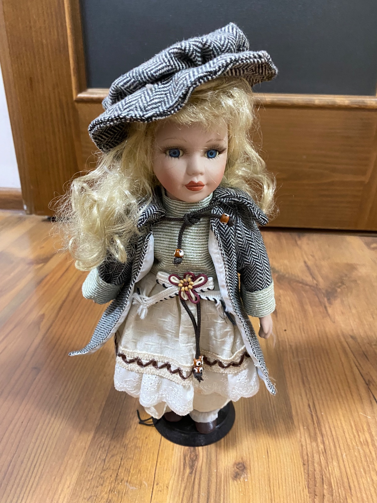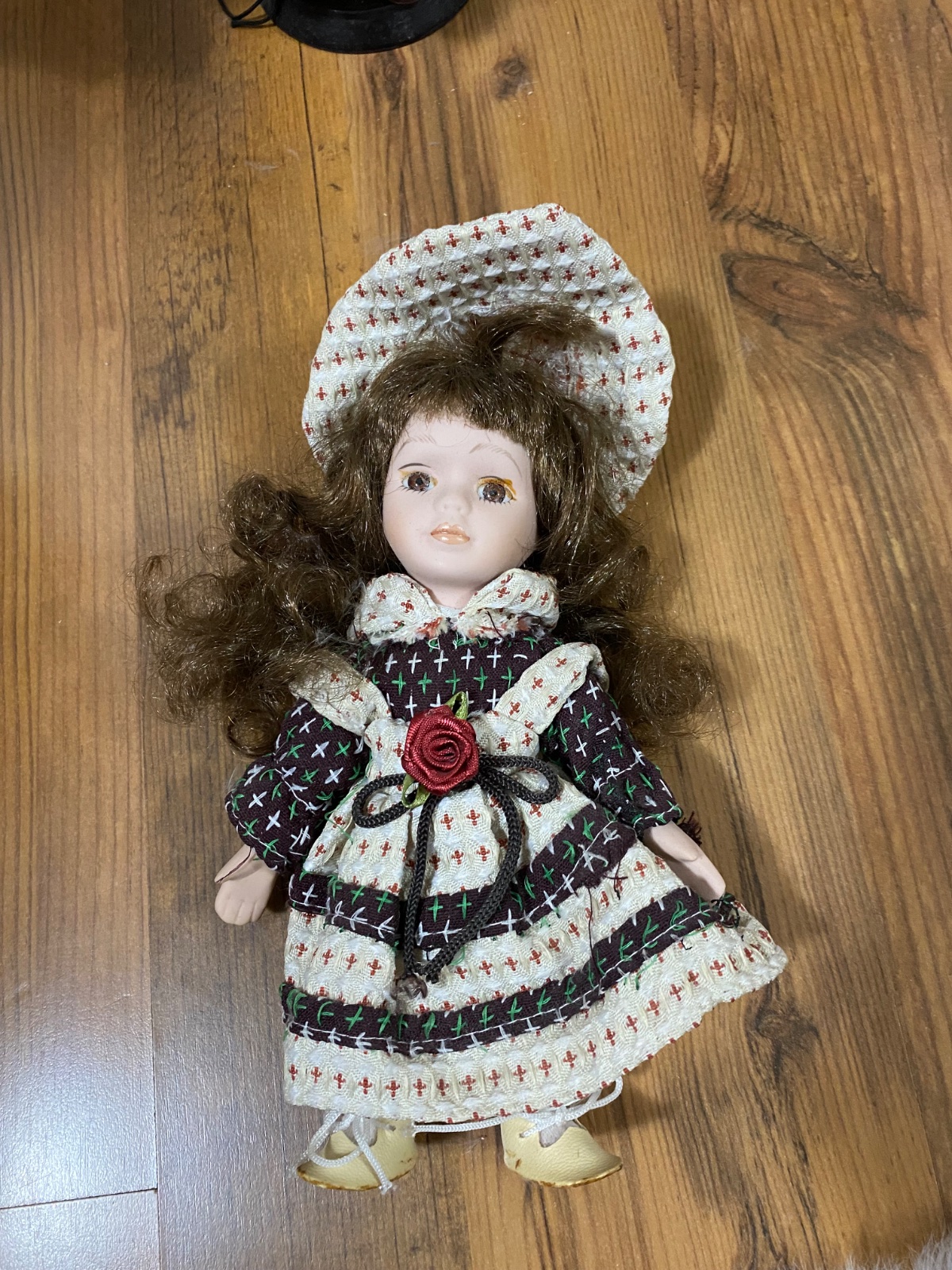 porcelánová bábika značená Promenade Collection, sediaca, meria 24cm, cena 6 e plus poštovné, alebo osobný odber v Pezinku