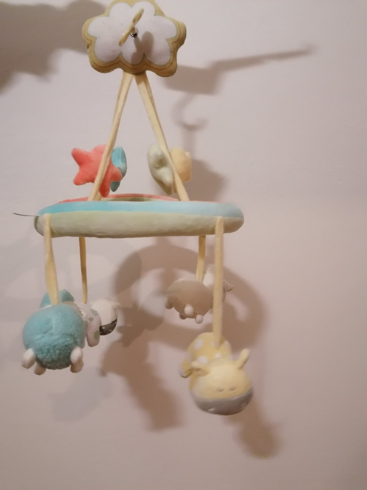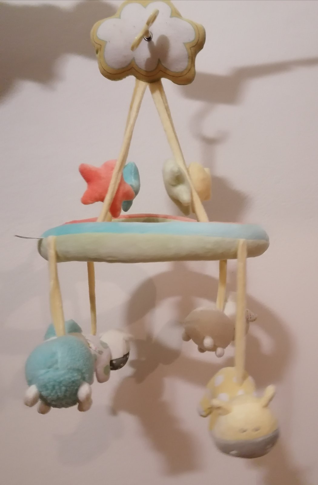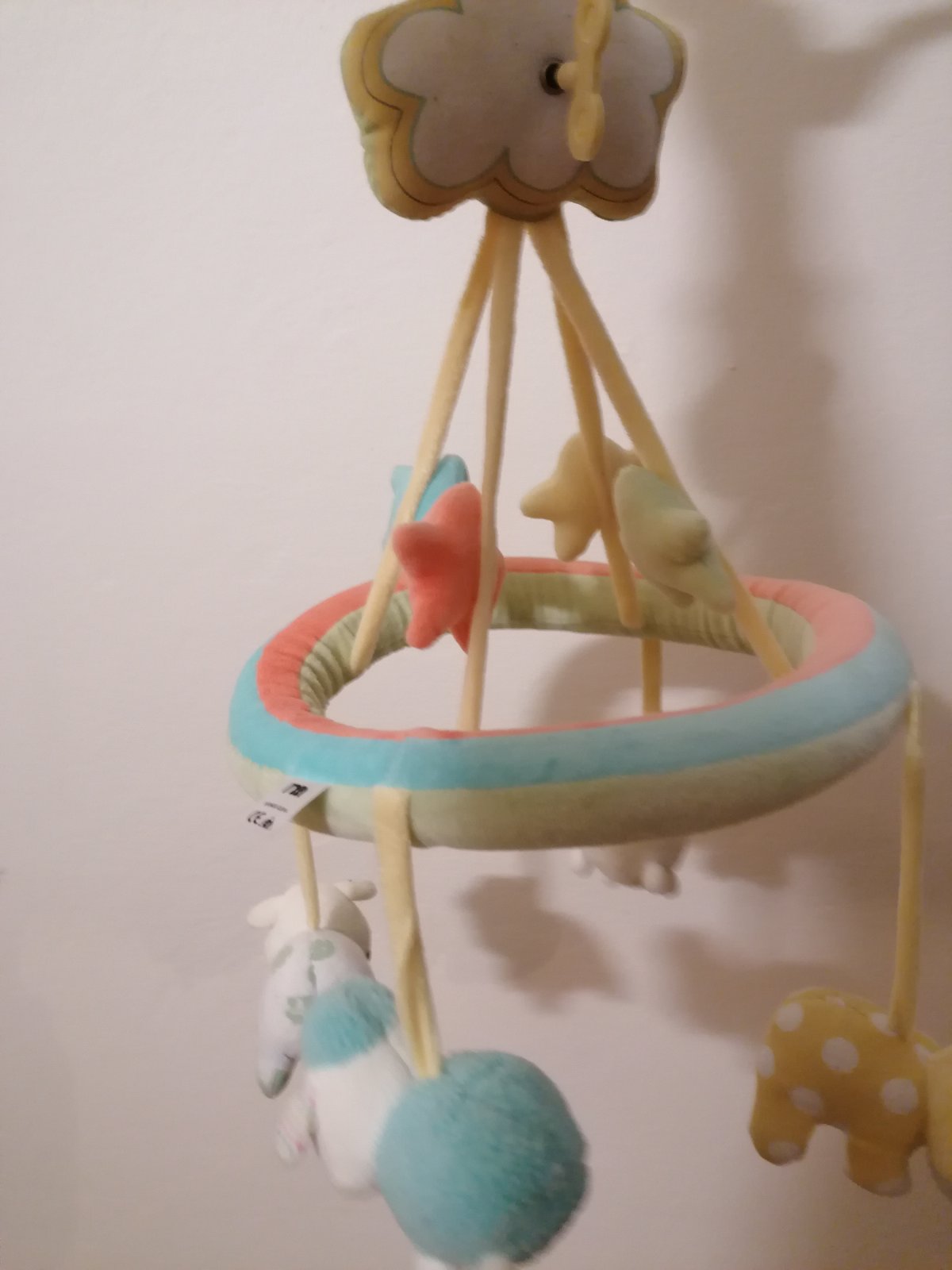Značka Fisher price. Hrá upokojujúce melódie, bruško sa pohybuje hore dole, lampa svieti, hračka dýcha, bije mu srdiečko. Toto všetko sa dá zvlášť vypínať podľa potreby. Super pomôcka na zaspávani...