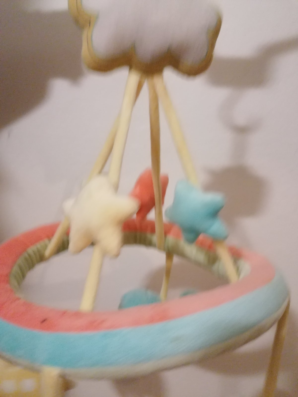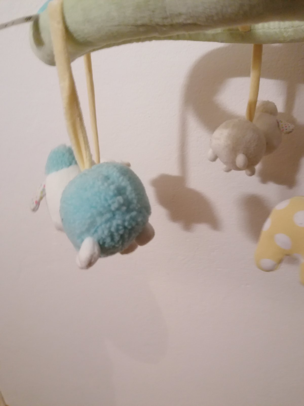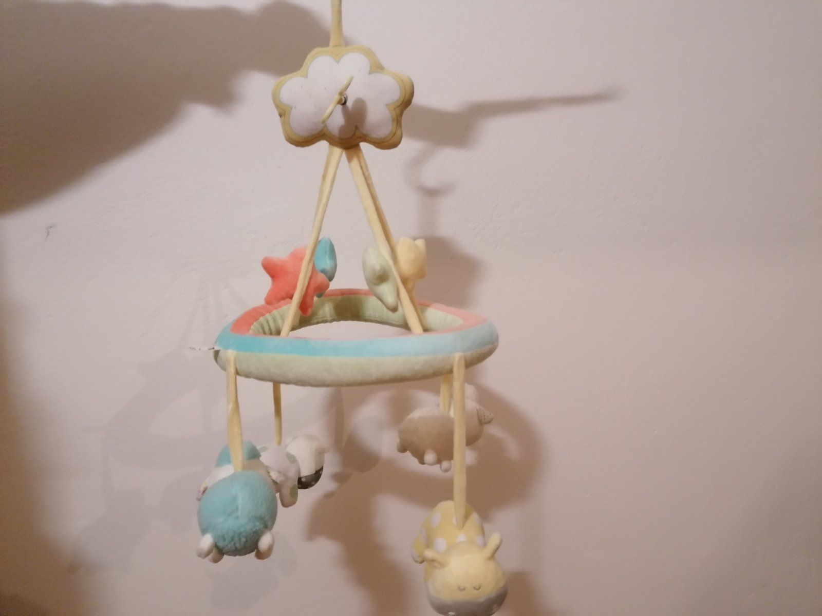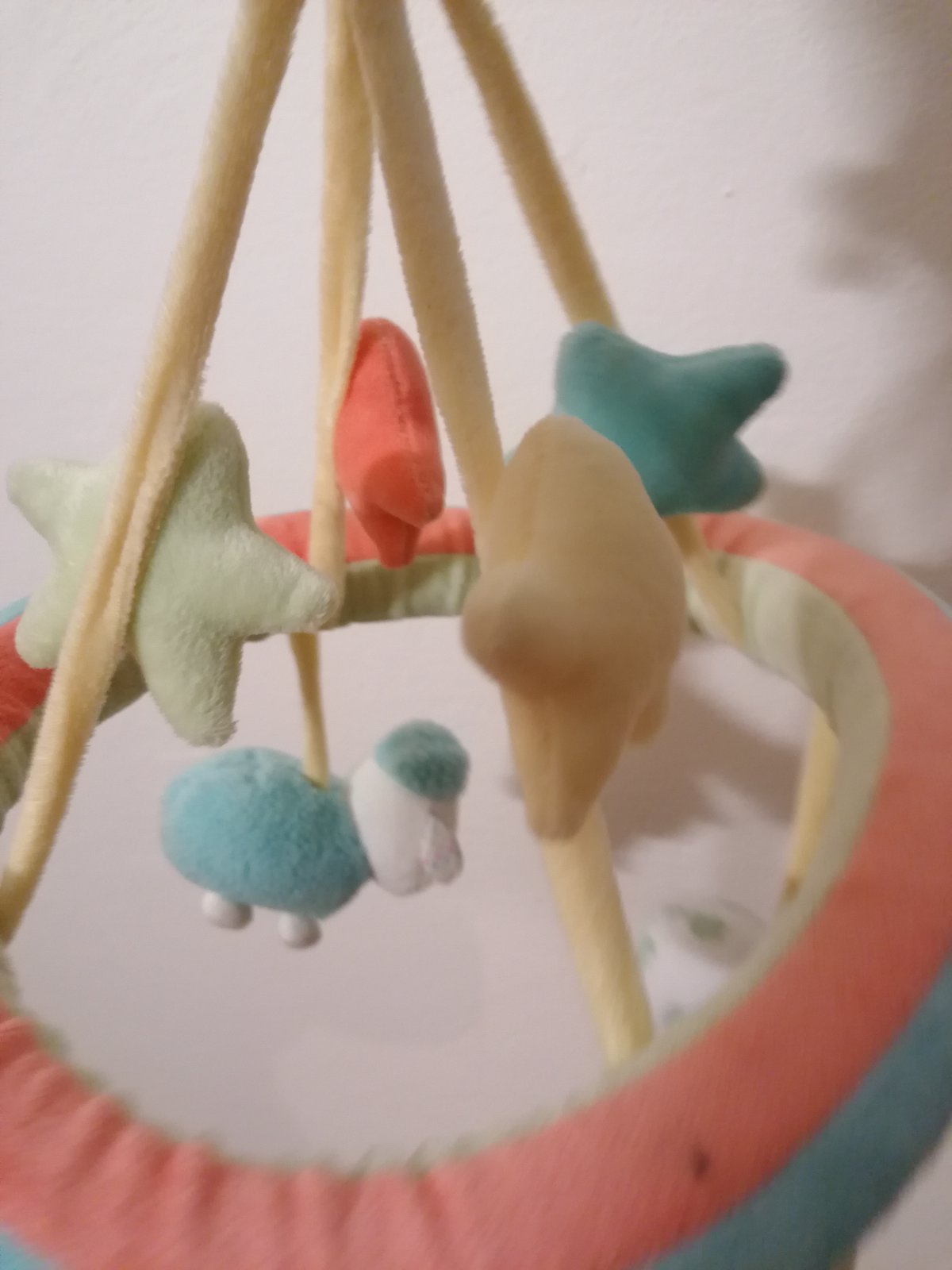 Značka Fisher price. Hrá upokojujúce melódie, bruško sa pohybuje hore dole, lampa svieti, hračka dýcha, bije mu srdiečko. Toto všetko sa dá zvlášť vypínať podľa potreby. Super pomôcka na zaspávani...