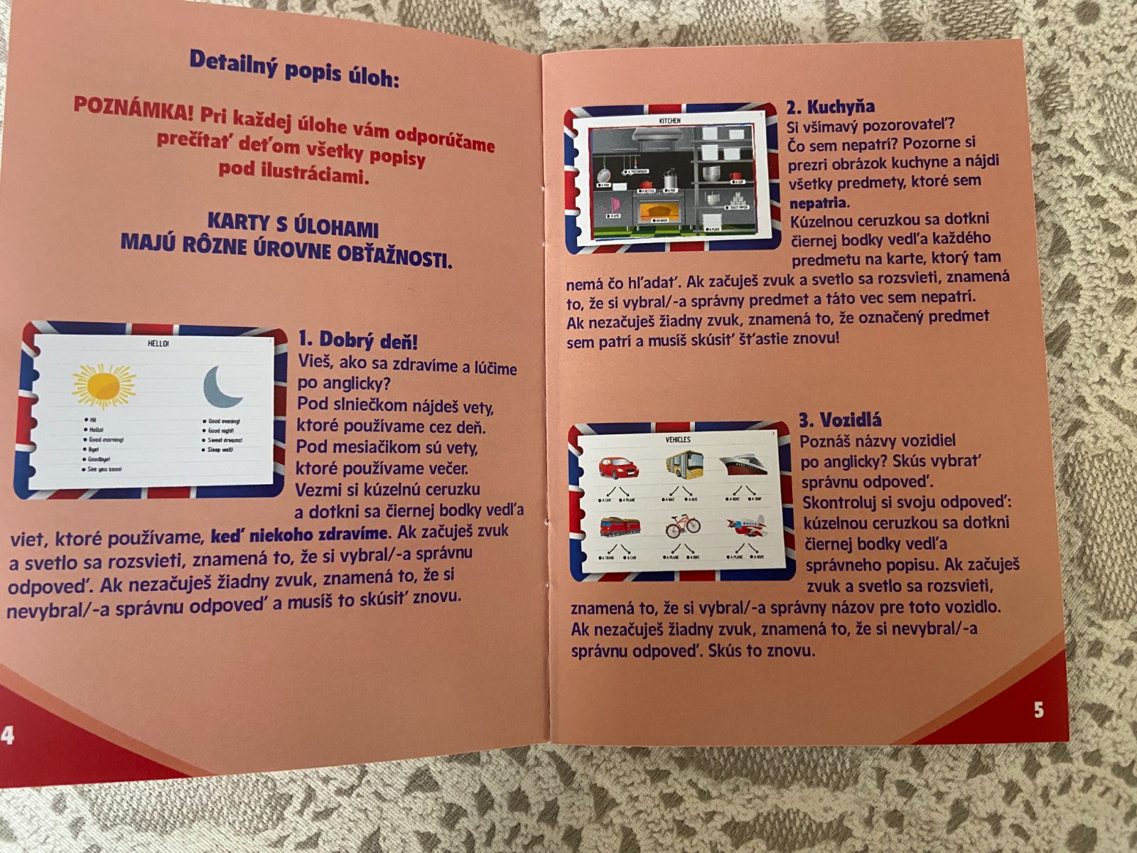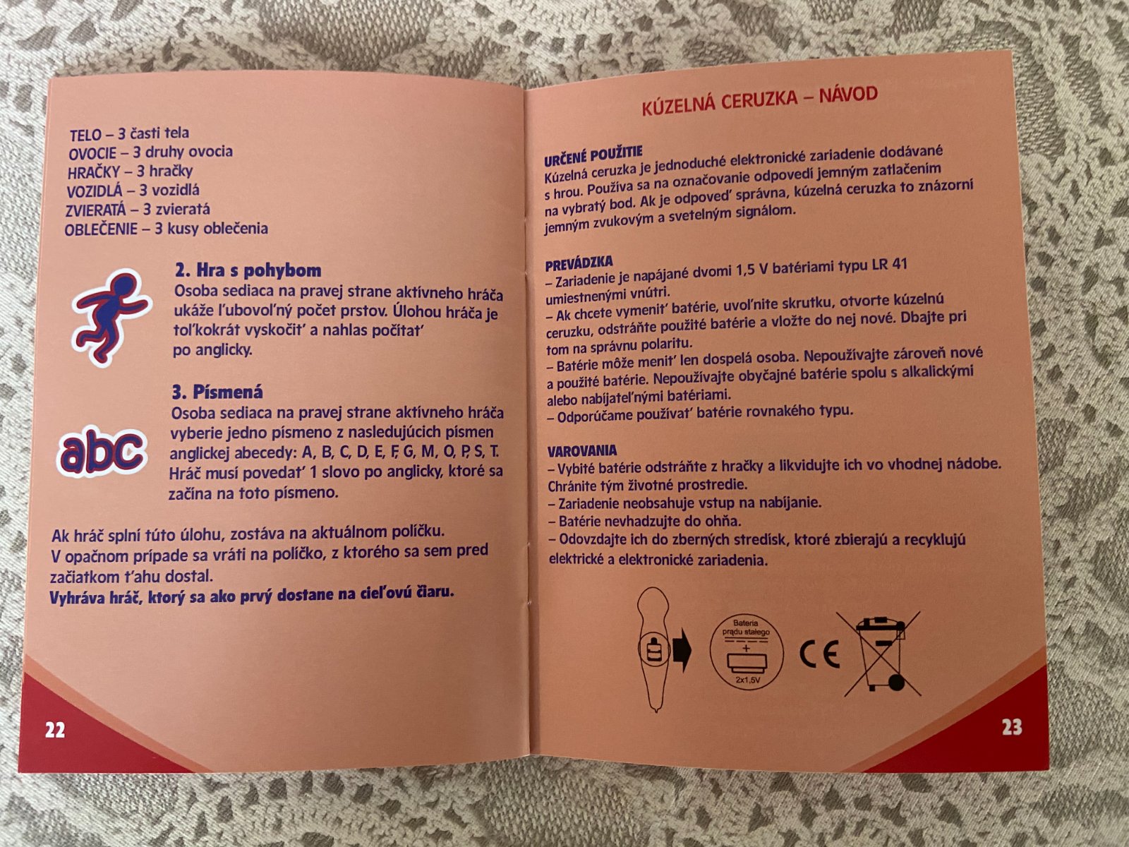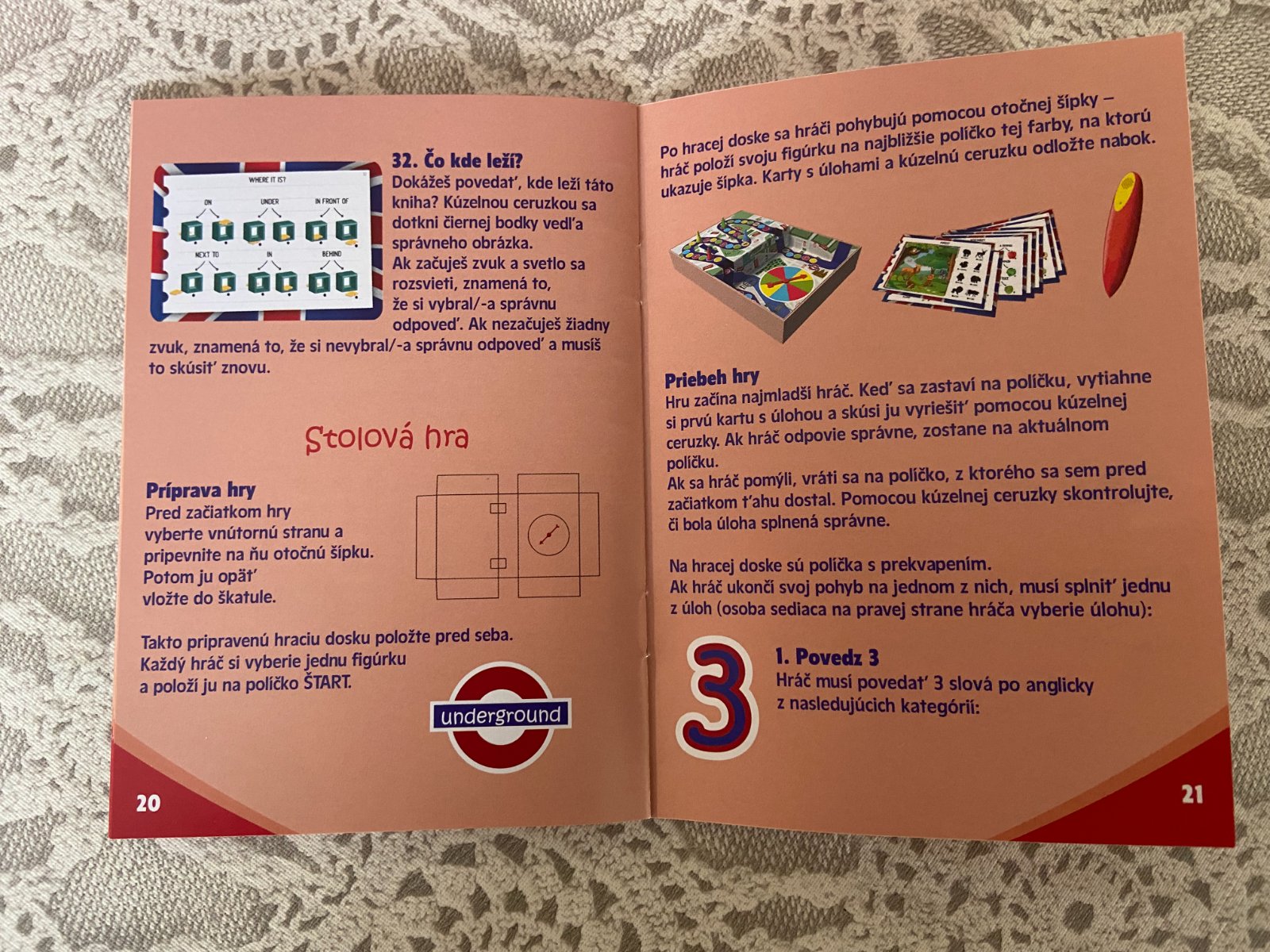 Predám vzdelávaciu hru Enjoy English, nehraná. Učenie sa angličtiny zábavnou formou. Hra obsahuje kartičky /200 obrázkov/ a elektronické pero, ktoré zahrá melódiu, ak správne uhádnete odpoveď. + stolová hra s hracou plochou, 4 postavičkami .