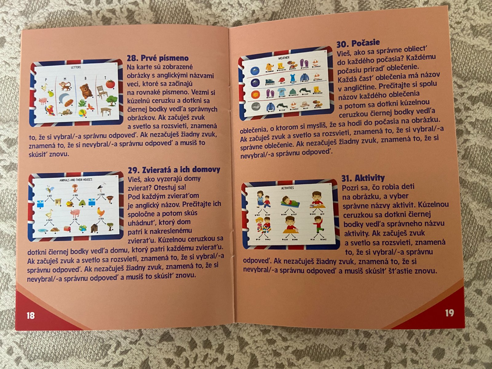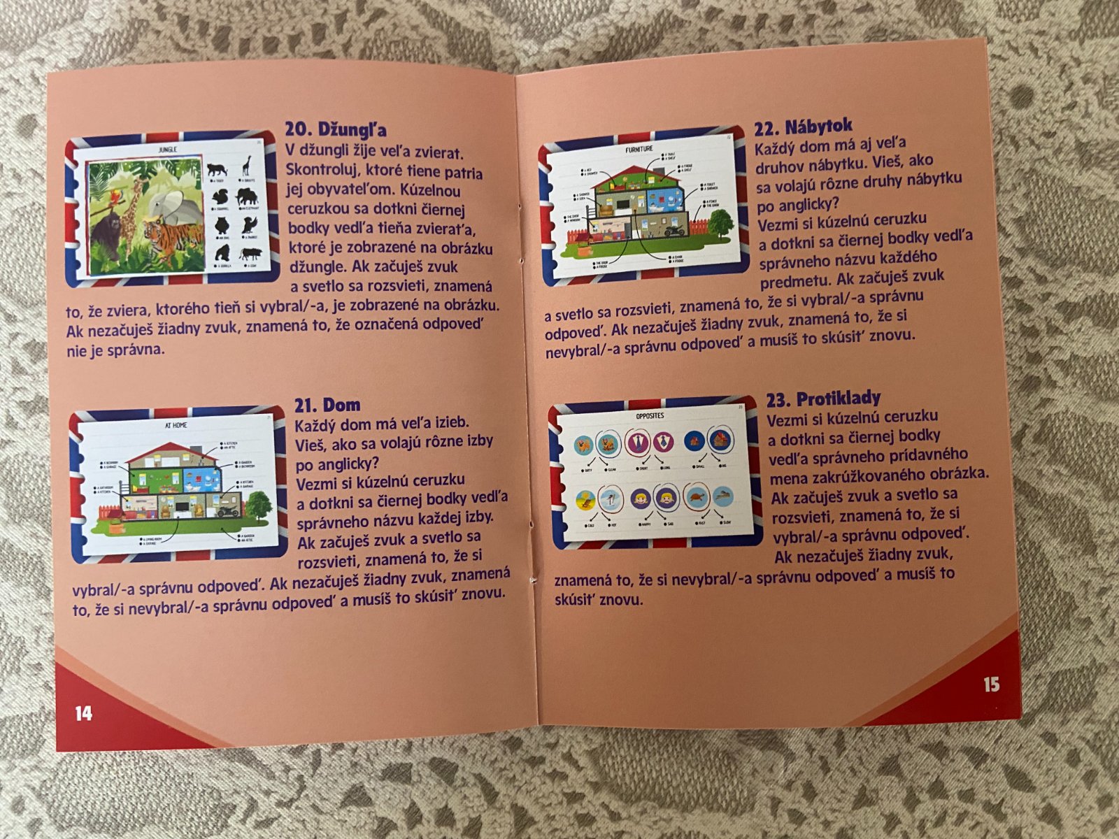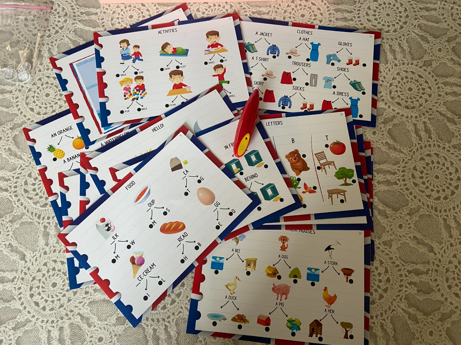 Predám vzdelávaciu hru Enjoy English, nehraná. Učenie sa angličtiny zábavnou formou. Hra obsahuje kartičky /200 obrázkov/ a elektronické pero, ktoré zahrá melódiu, ak správne uhádnete odpoveď. + stolová hra s hracou plochou, 4 postavičkami .