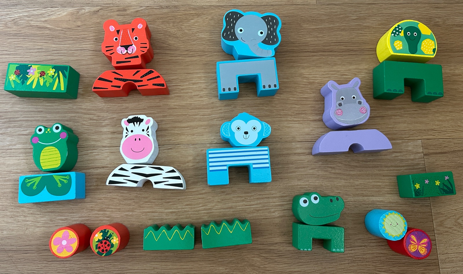 ☘️❤️Veľmi kvalitná drevená skladačka(stavebnica) zvieratká Carousel Jungle Safari Building Blocks 18M+