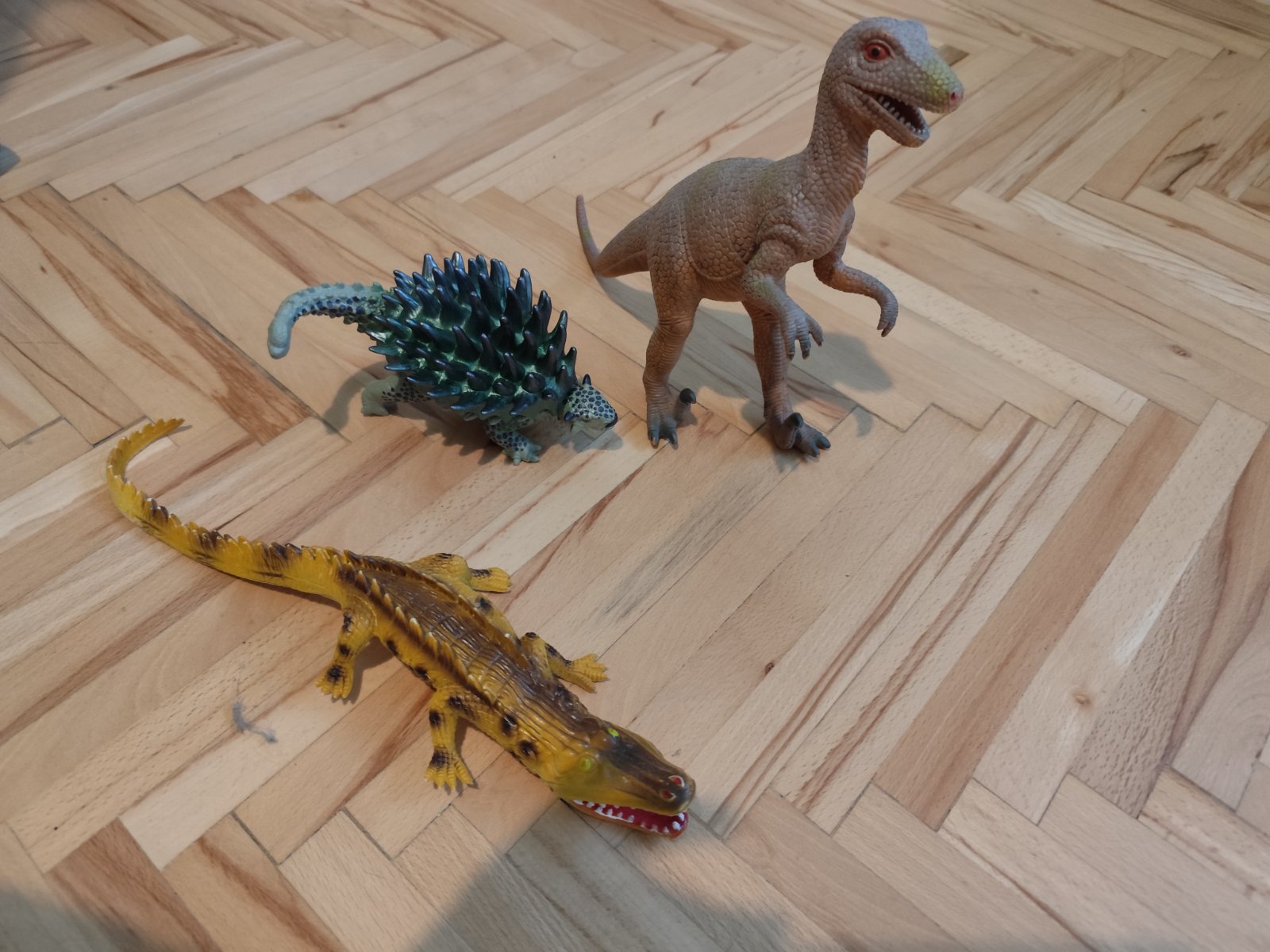 Dinosauri a krokodíl, bez poskodenia, možné kúpiť spolu alebo samostatne, T rex nepohyblivy, cena 8 eur už vratane poštovné. Krokodíl nepohyblivy, cena 7,50 už vrátane poštovného. Ďalší dinosaurus pohyblivý chvost, nohy, hlava, dá sa odobrať vrchná gumená časť (viď foto), cena 11 eur už vrátane poštovného. Pri kúpe viacerých kusov cena dohodou