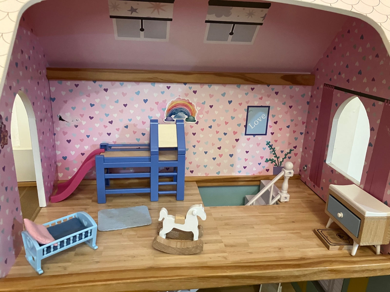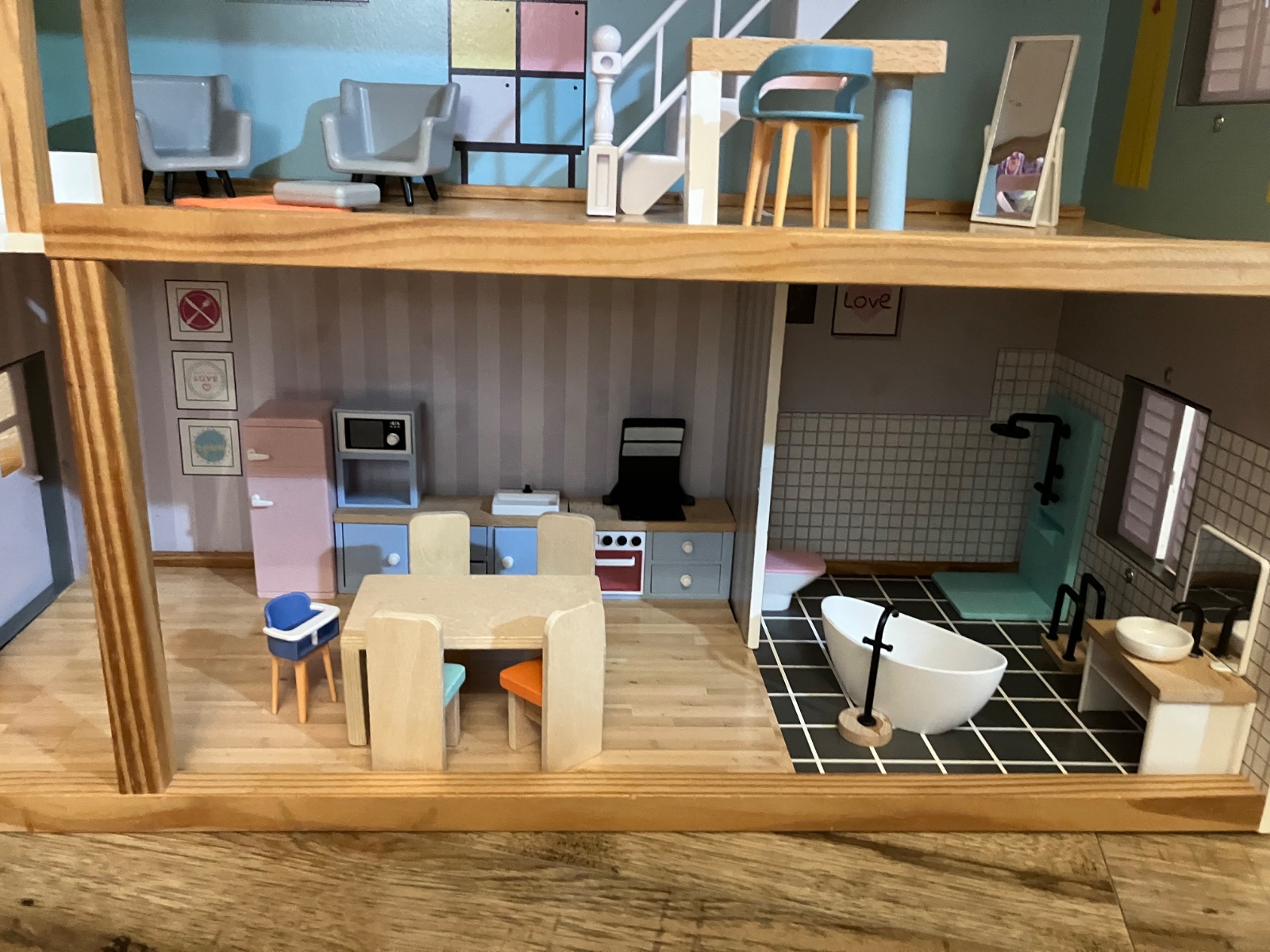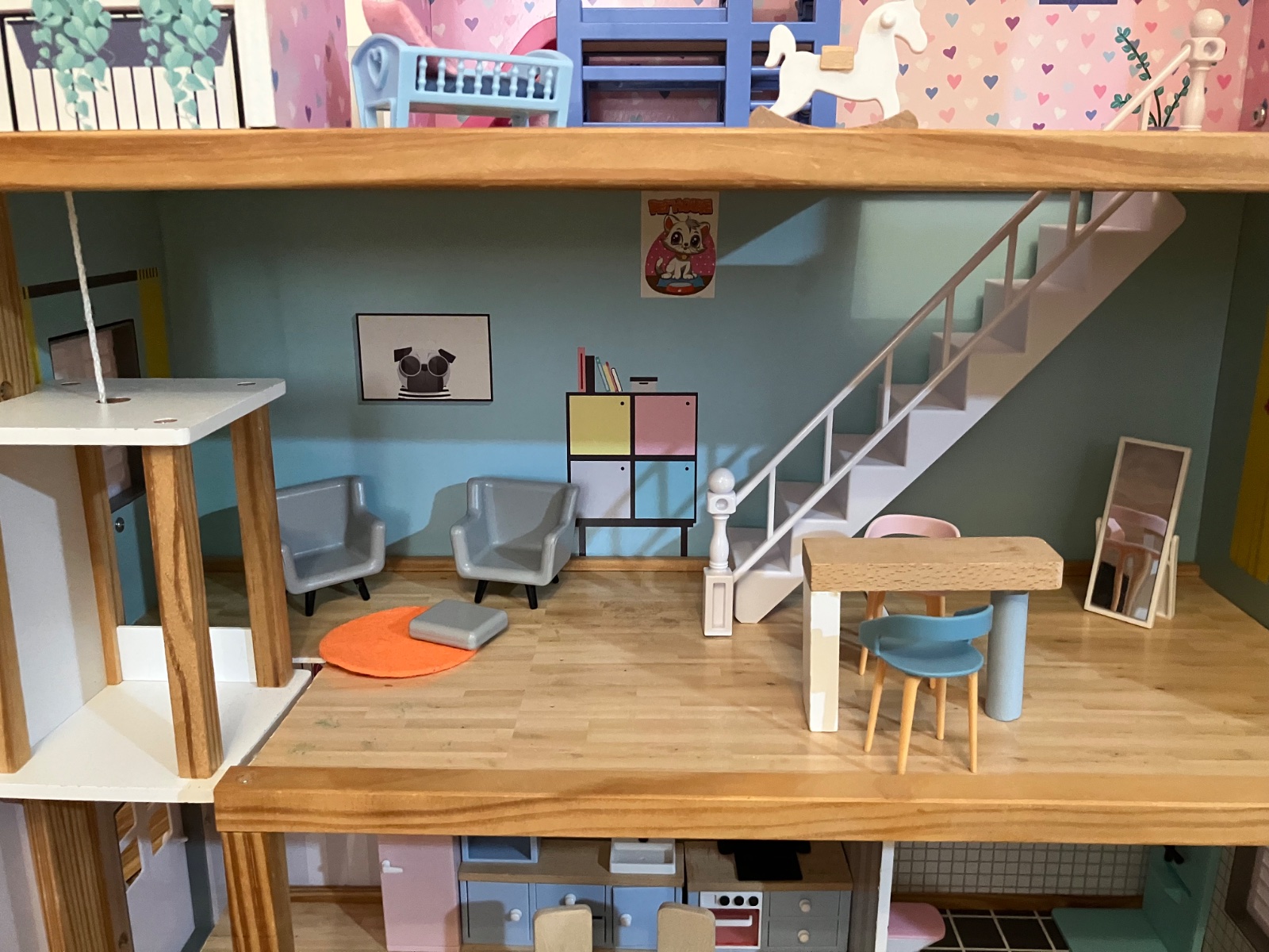 Predám drevený používaný domček pre bábiky (figúrky). Súčasťou domčeka je aj zariadenie. Domček má známky používania, hlavne od nálepiek, ktoré nechceli ísť dole a došlo k poškodeniu náteru. Nie je to prekážka k ďalšiemu používaniu/ hraniu sa s domčekom. Jedna strana viď.na foto. Je to zohľadnené v cene. Cena nového sa pohybuje od 50€ vyššie. Nejaký šikovný kutil si s tým poradí a opraví , poprípade prerobí podľa predstáv. Domček má potenciál prerábky poďla vlastnej fantázie (doplnenie osvetlenia, zvukov, zmena maľovky a pod. Osobný odber Košice - Staré mesto.