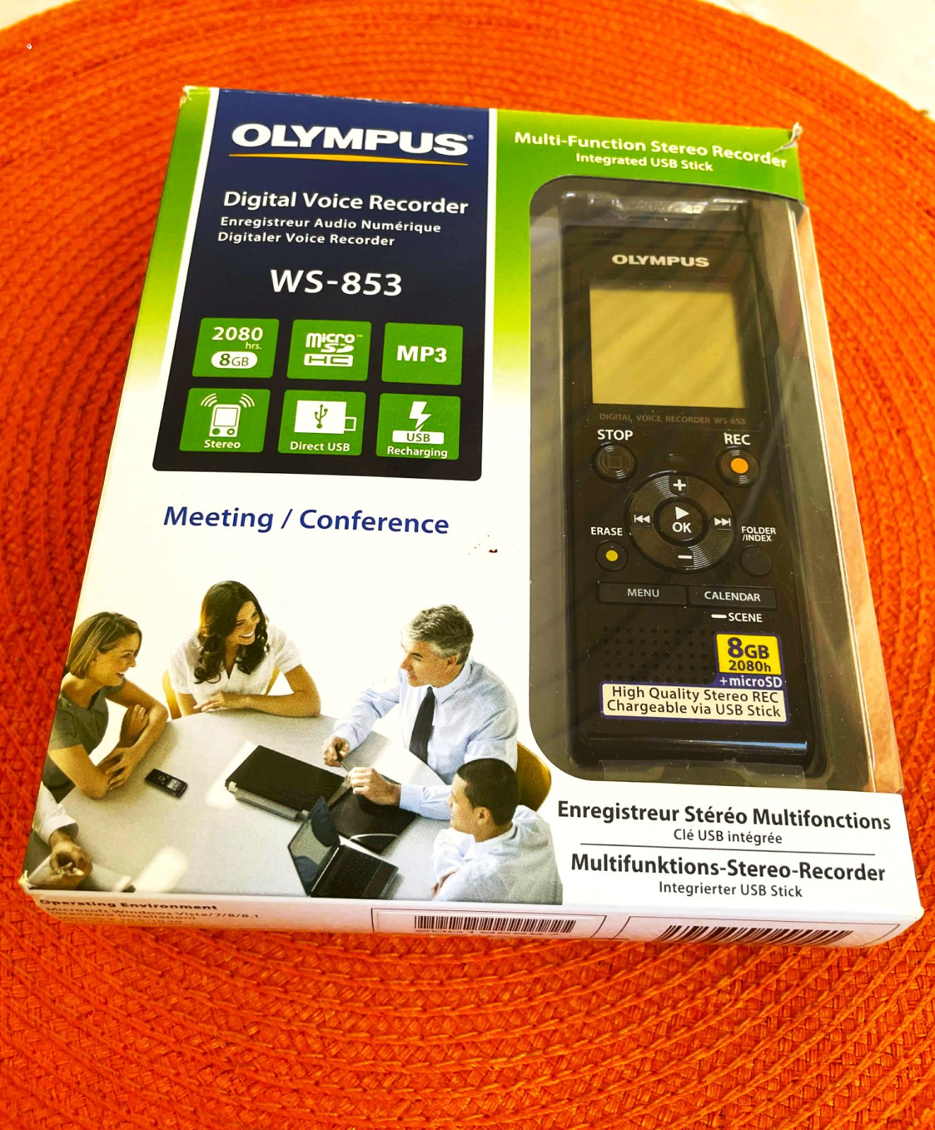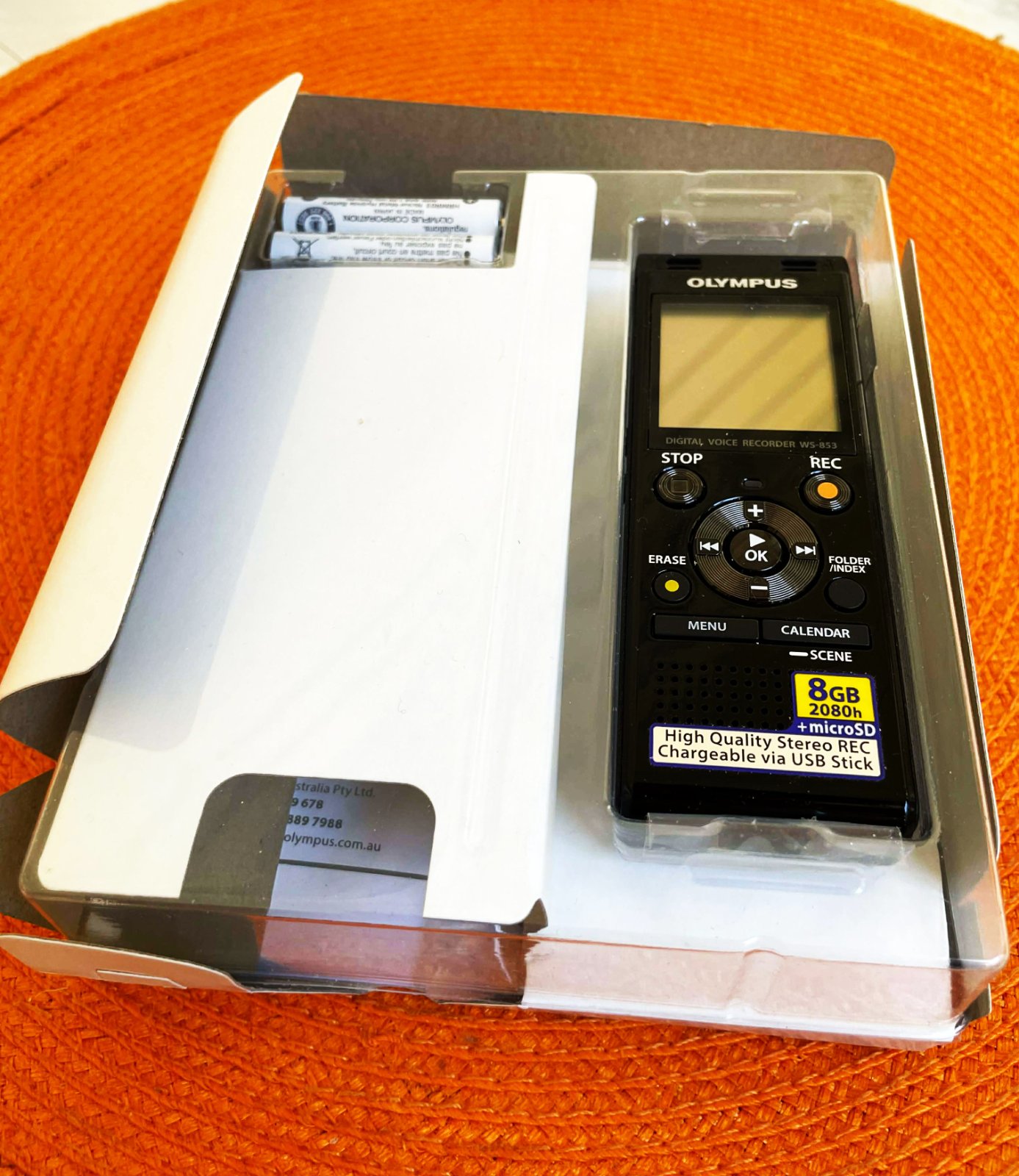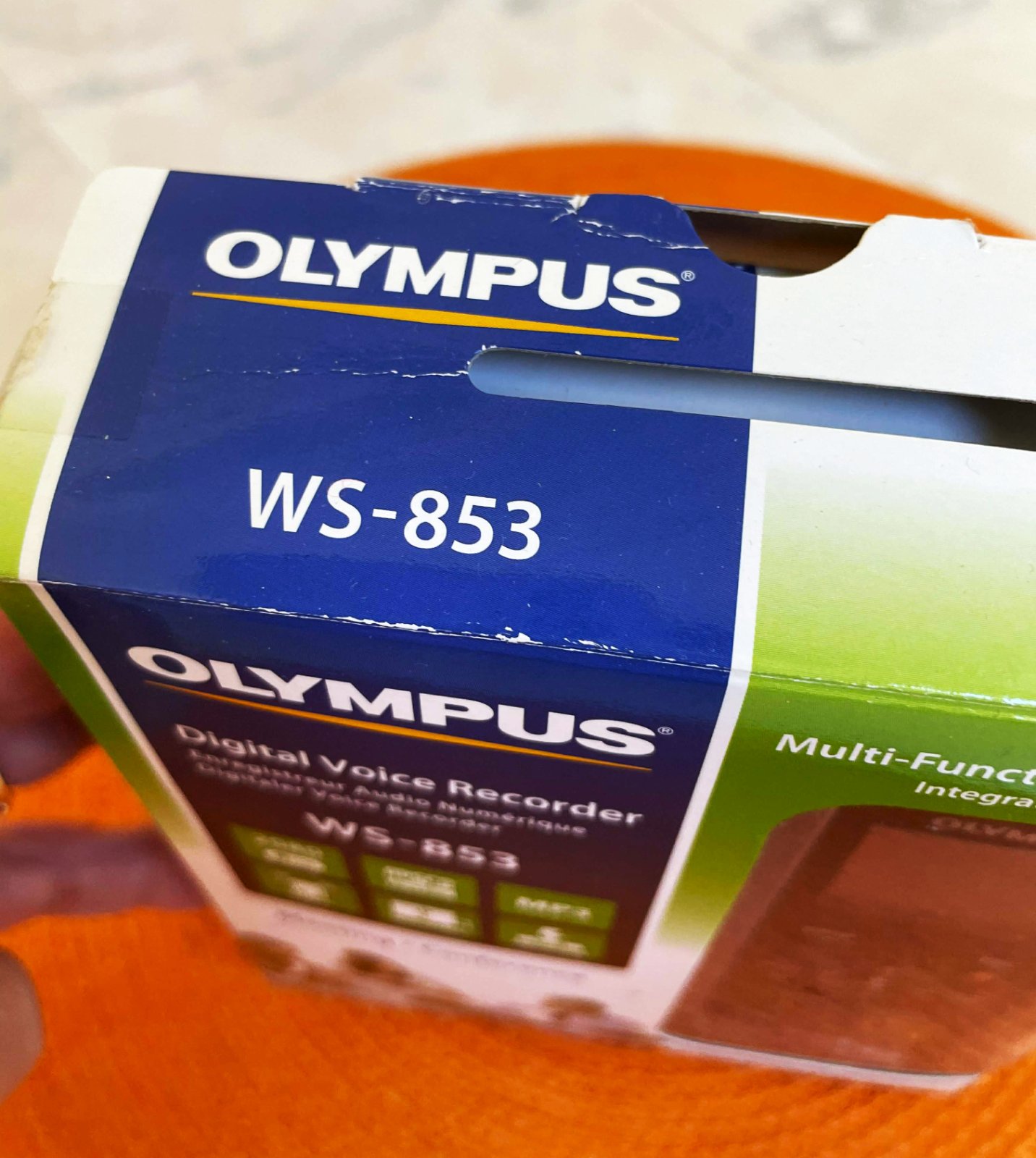 valitný značkový diktafón Olympus,min. použitý,obsahuje dva nízko šumové smerové stereofónne mikrofóny,ktoré poskytujú vynikajúcu stereofónnu kvalitu,informácie sú zreteľne zaznamenané,bez ohľadu na polohu hovoriaceho alebo z ktorého smeru prichádzajú,vďaka stereofónnemu záznamu v najvyššej kvalite a inteligentným funkciám je digitálny rekordér WS-853 zárukou kvality. Najmä funkcia potlačenia šumu je ideálna na dosiahnutie čistej a detailnej reprodukcie záznamu.