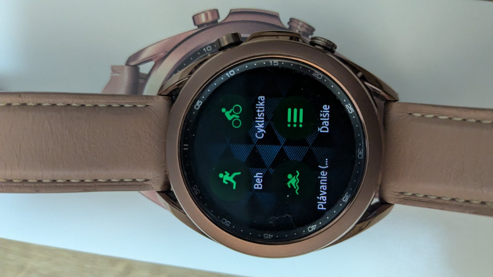 Priemer 41 mm, farba bronzová, veľkosť displeja 1,2 '', operačný systŗm Tizen.