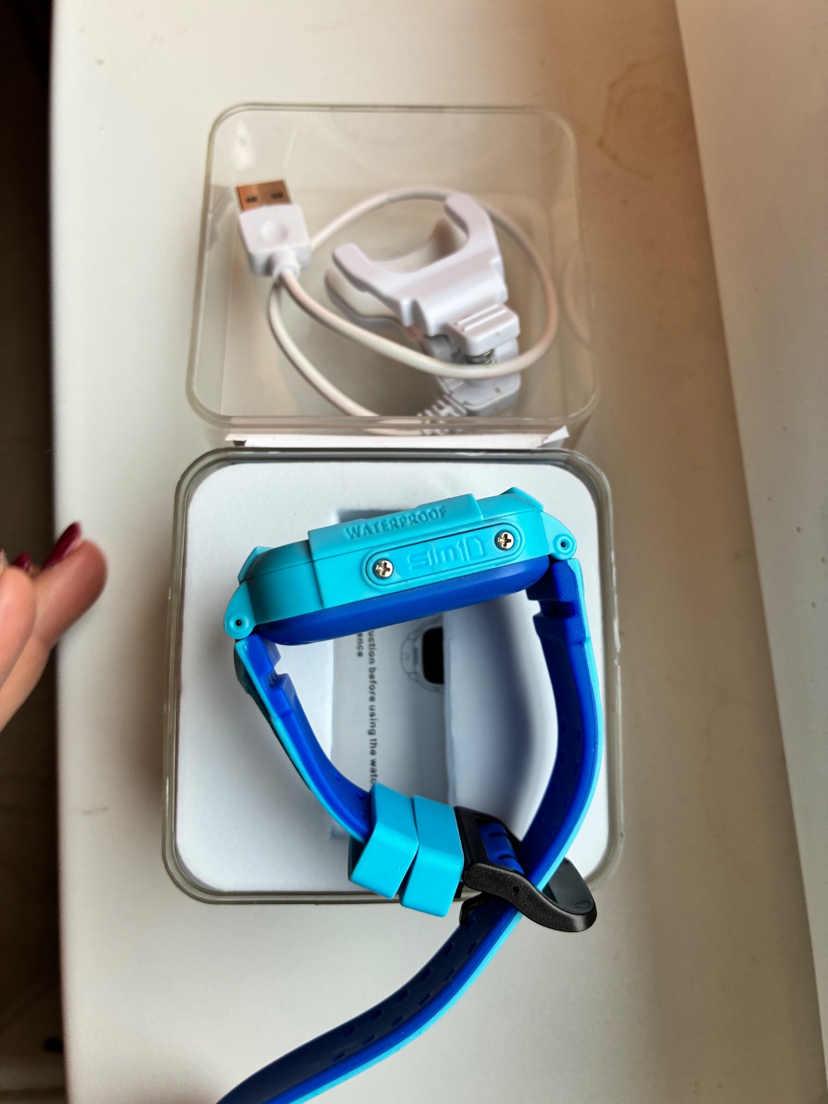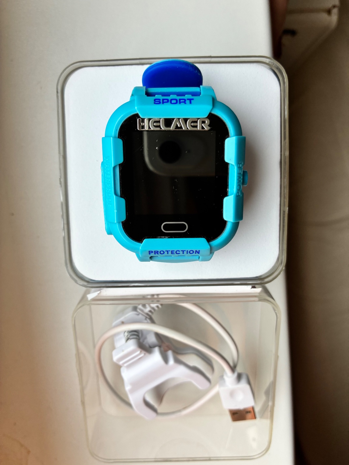 Detske hodinky s GPS Helmer, velmi malo pouzivane, funkcne a bez zavad. Nabojaci kablik sucastou. Potrebne dokupit SIM. Da sa cez ne volat aj pisat, maju fotoaparat a je mozny aj odposluch. Na displeji ochranna folia