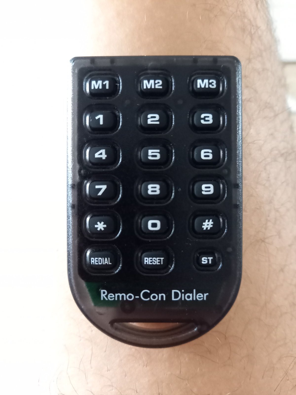 Radio Shack pocket tone-dialer, Vreckový tónový diaľkový vytáčač, farba čierna, plne funkčný, jedna gombíková batéria.