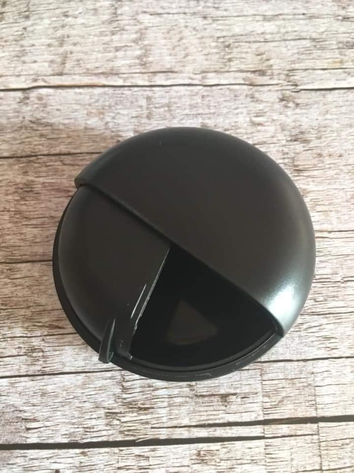 Dóza na slúchadla, alebo drobnosti. Ja som v nej nosila slúchadla, ale použiteľná aj na iné drobnosti do kabelky, či uloženie ( lieky, šperky, mince....) Zatvoríte pootočením