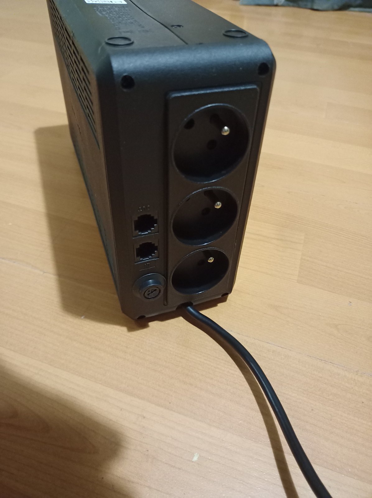Používaný záložný zdroj, predajná cena 65€. Žiaľ má nejakú vadu, nedobija bateriu, záložný zdroj funguje len na baterku. Preto je cena taká aká je.