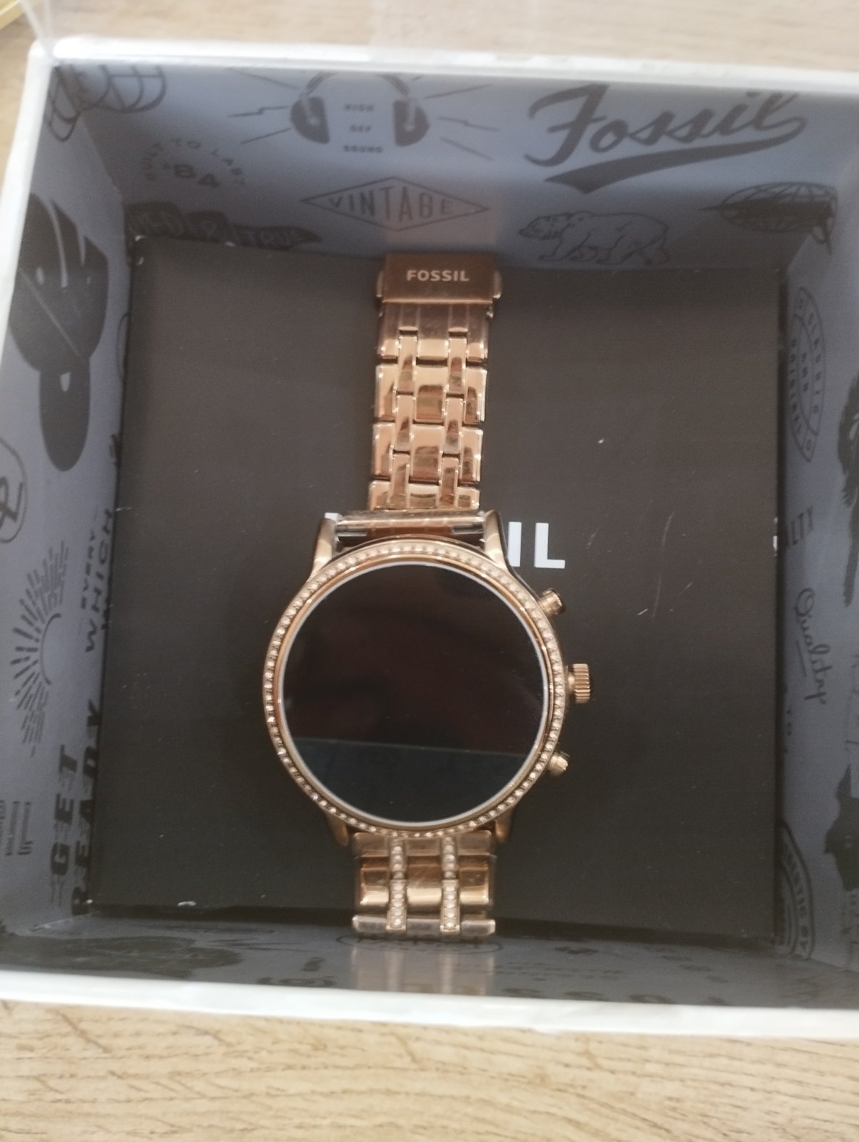 Značka Fossil. Používané asi 8 mesiacov, aj to minimálne. Na materskej boli nevyužité. Dostala som nové, tak posúvam.