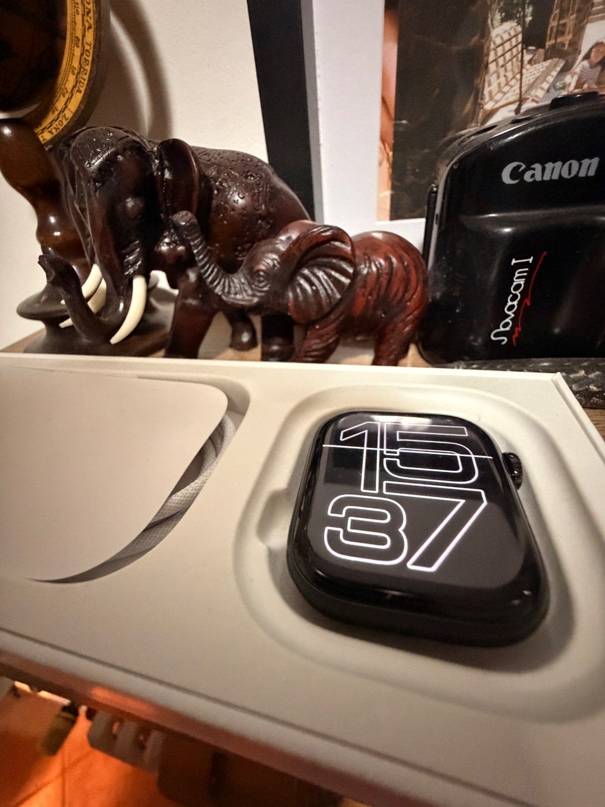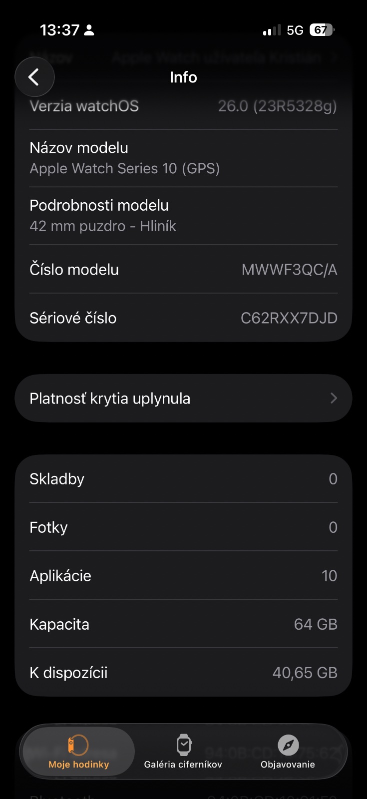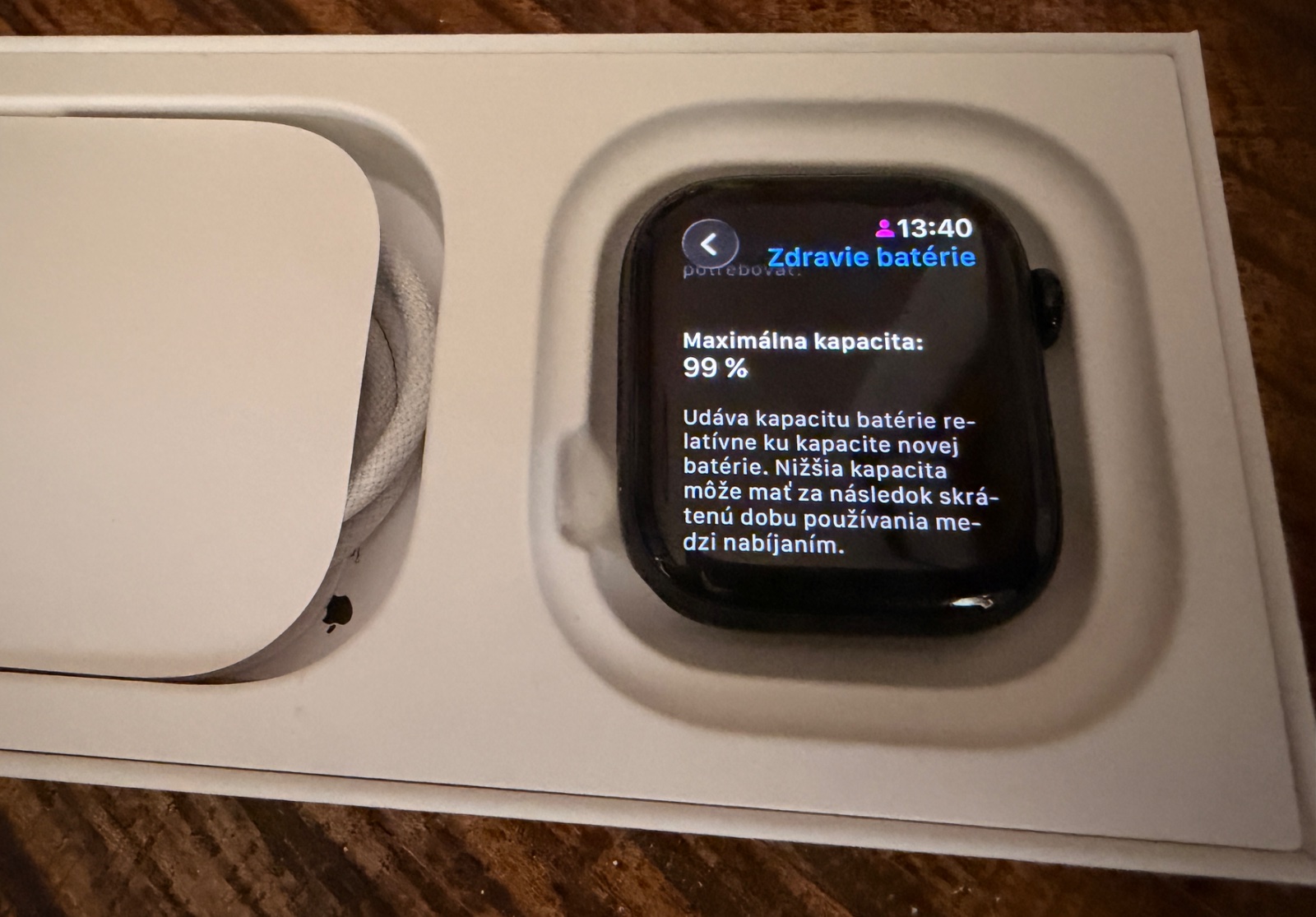 Apple Watch Series 10, 42 mm, black, s pôvodným remienkom M/L. Rok používané v ochrannom púzdre. Hodinky sú vo vyzuálnom top stave, takmer bez známok používania. Jediná drobnosť je, že po ponorení do vody býva reproduktor dočasne slabší a funkcia water lock niekedy nefunguje úplne na 100 %. Po krátkom čase sa však zvuk vráti skoro do normálu a hodinky fungujú bez problémov, vrátane telefonovania. Inak sú plne funkčné a vo výbornom stave.