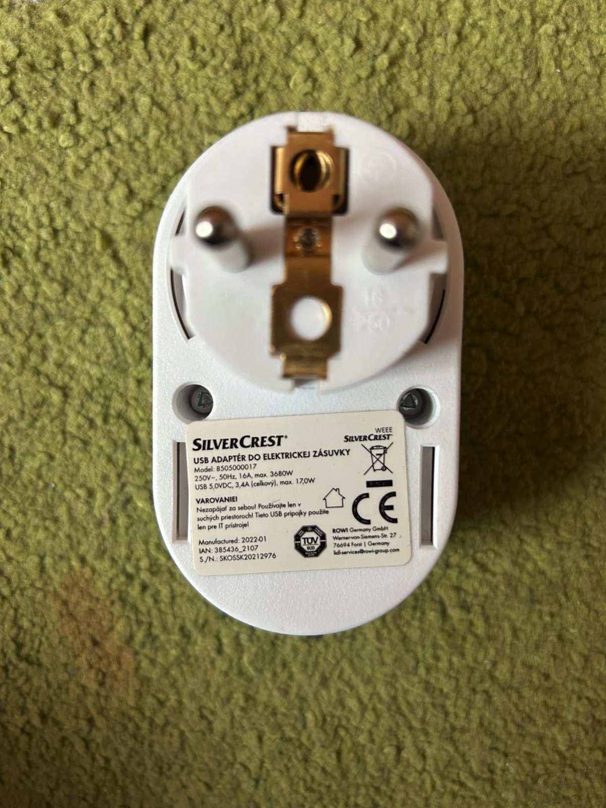 zástrčkový adaptér + USB zn. SilverCrest, v TOP stave