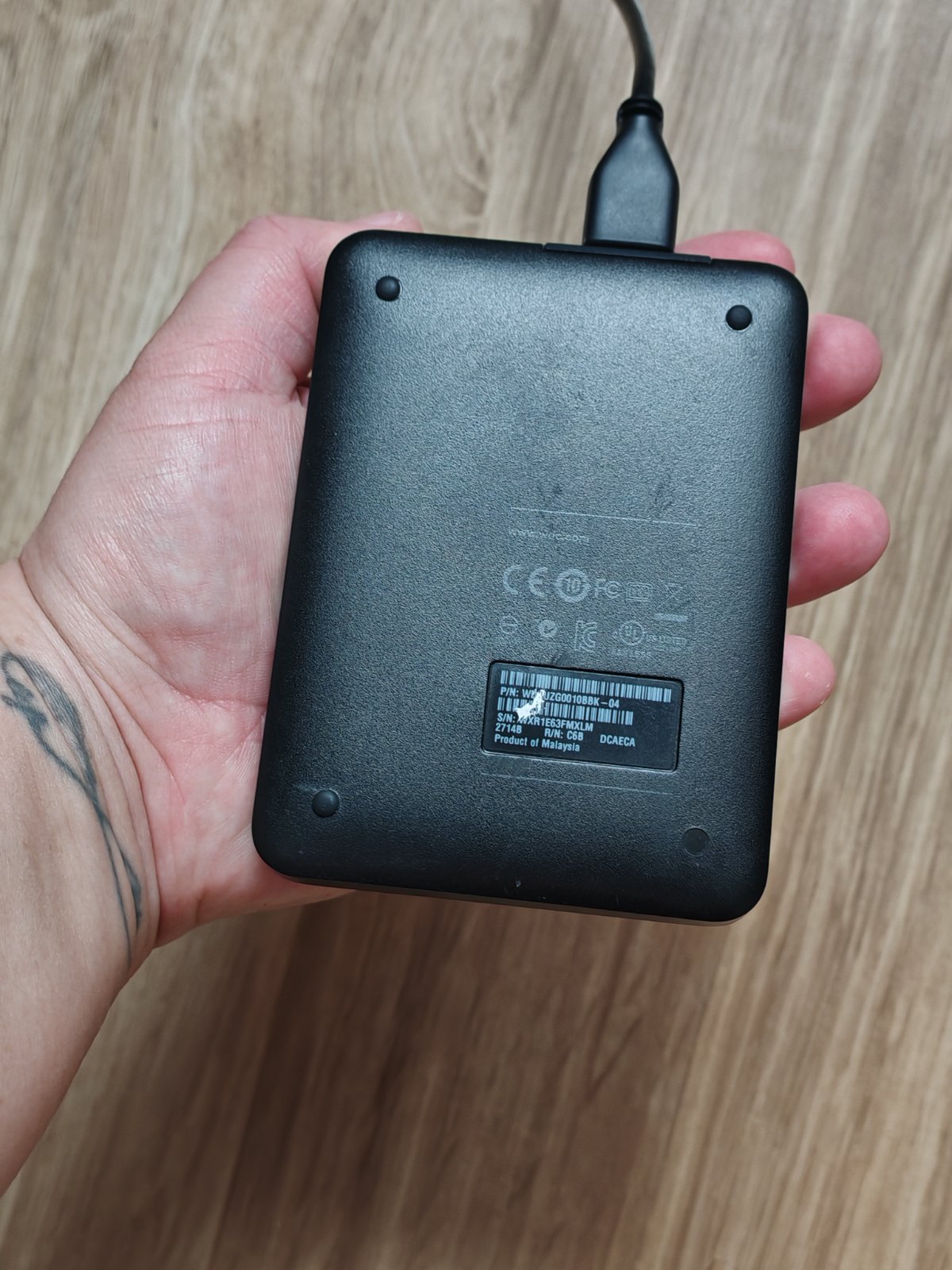 Externý má 1TB. Používaný niekoľko rokov, plne funkčný len má pár škrabancov a na spodnej strane mu chýba jedna gumená "nožička" viď foto.