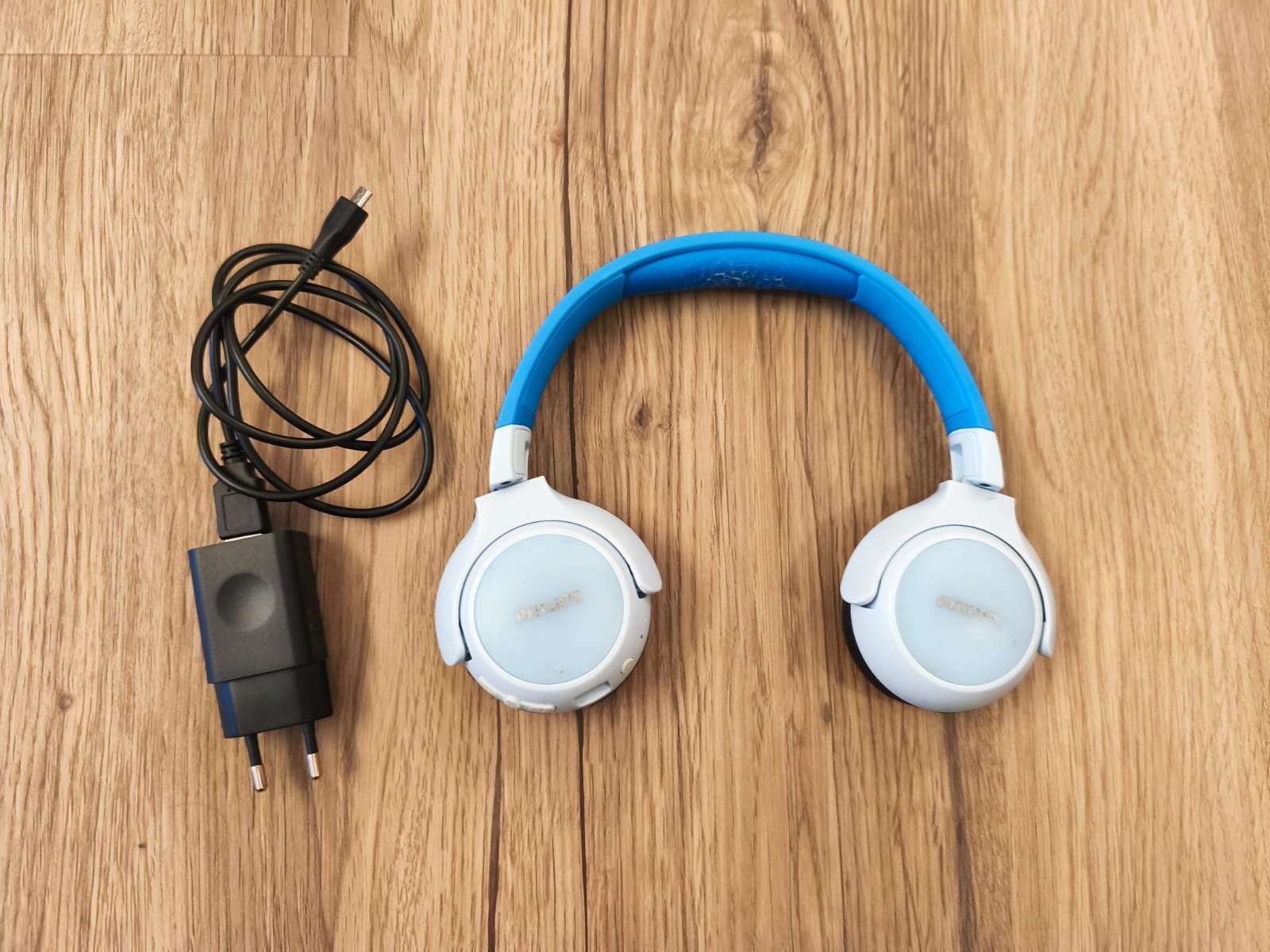 - bezdrôtové detské slúchadlá Philips, používané, poškodenie - viď na foto, s káblom a koncovkou.