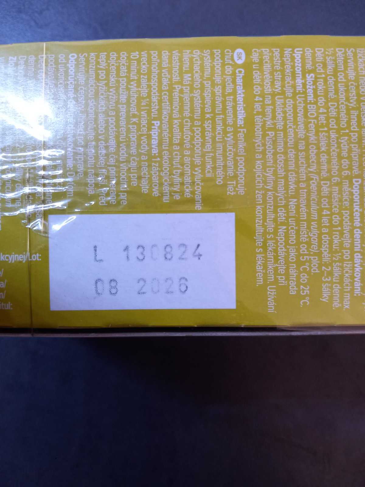 - caje pre malicke deti (pouzivala som ked sa malicky nevedel vykakat). Datum spotreby je uvedeny na obale.